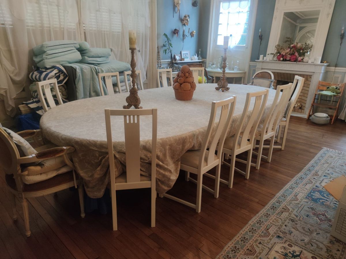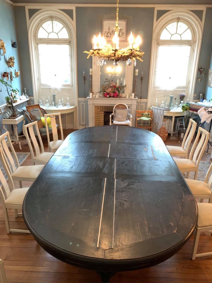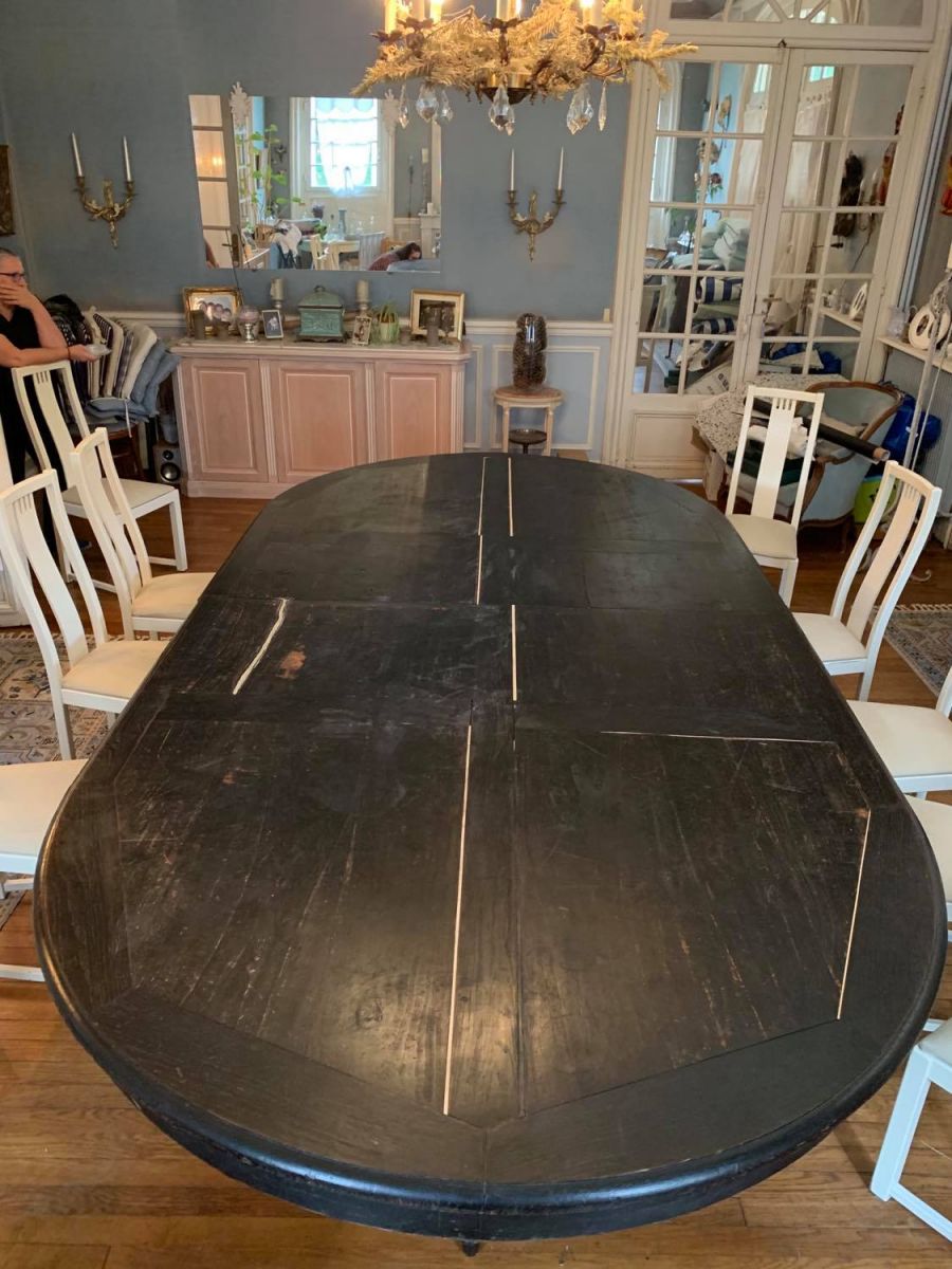 Très belle table d'exception, plateau à retaper mais tout à fait utilisable en l'état avec une nappe.
