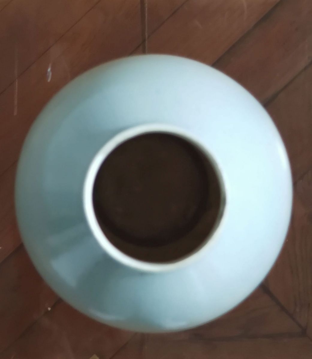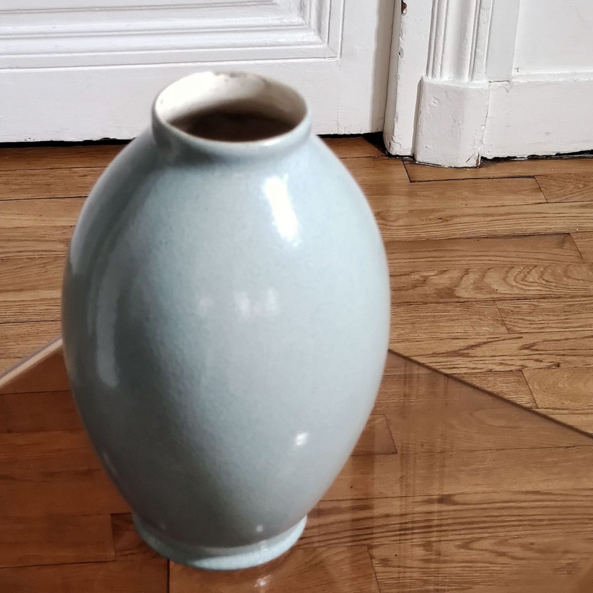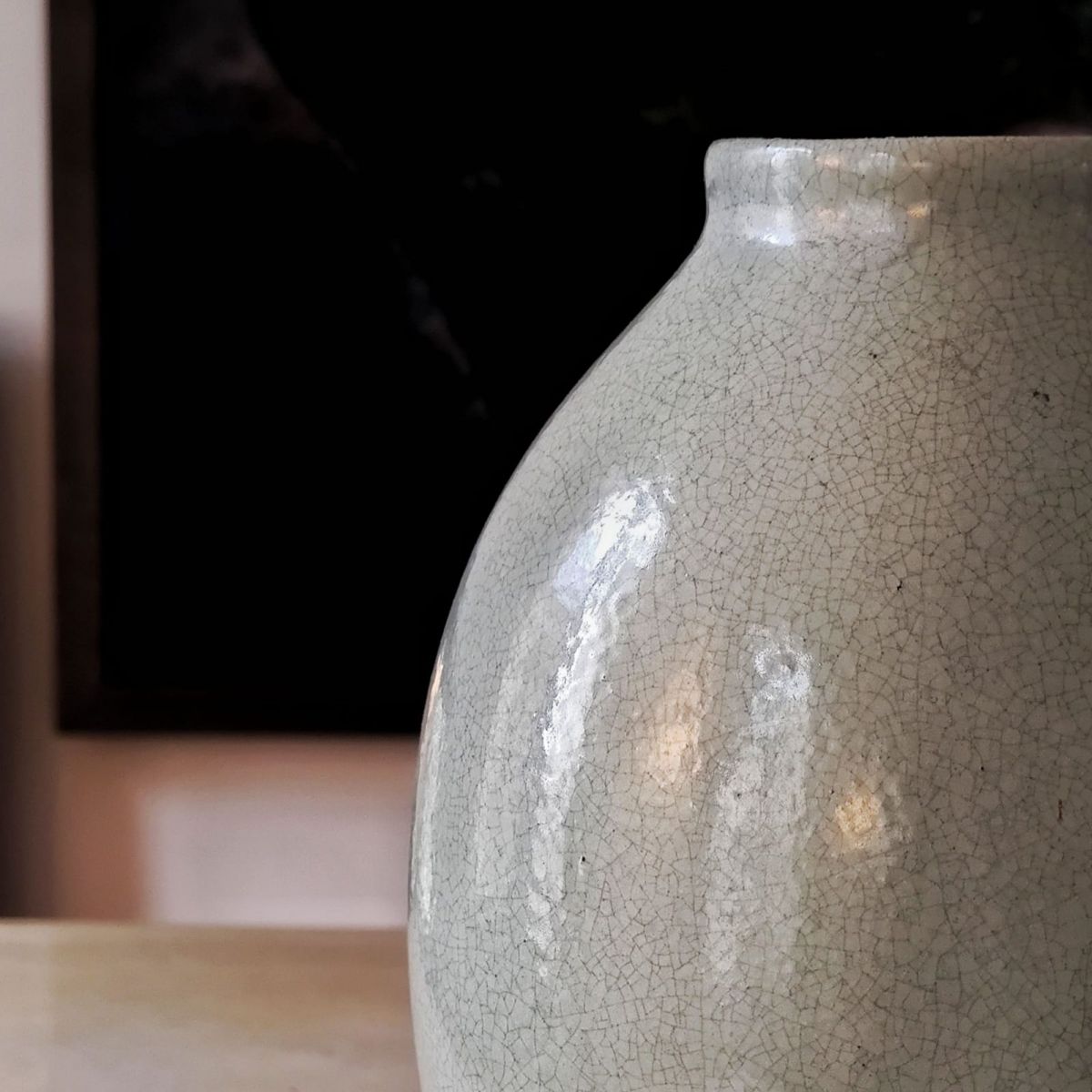 Beau vase boule en céramique émaillée. La couleur et la brillance sont parfaites. La couleur vert d'eau est élégante. Très bon état. Made in Belgium.