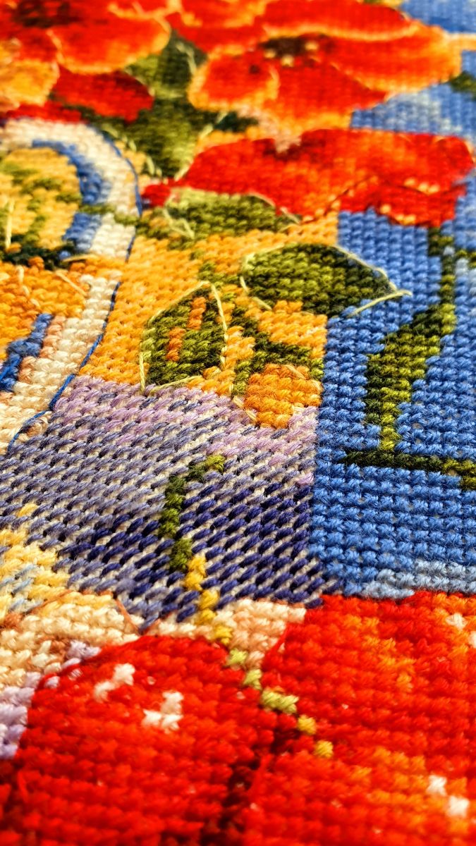 Tapisserie Broderie point de croix sur toile