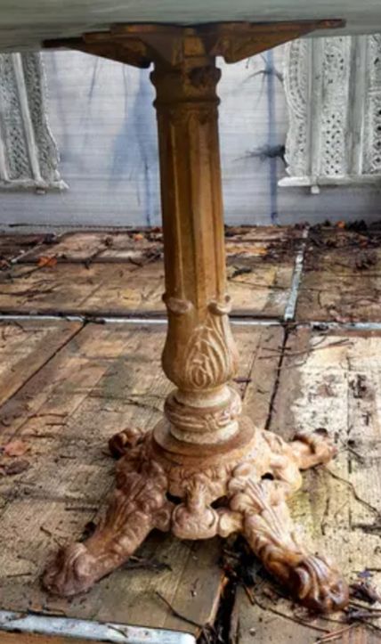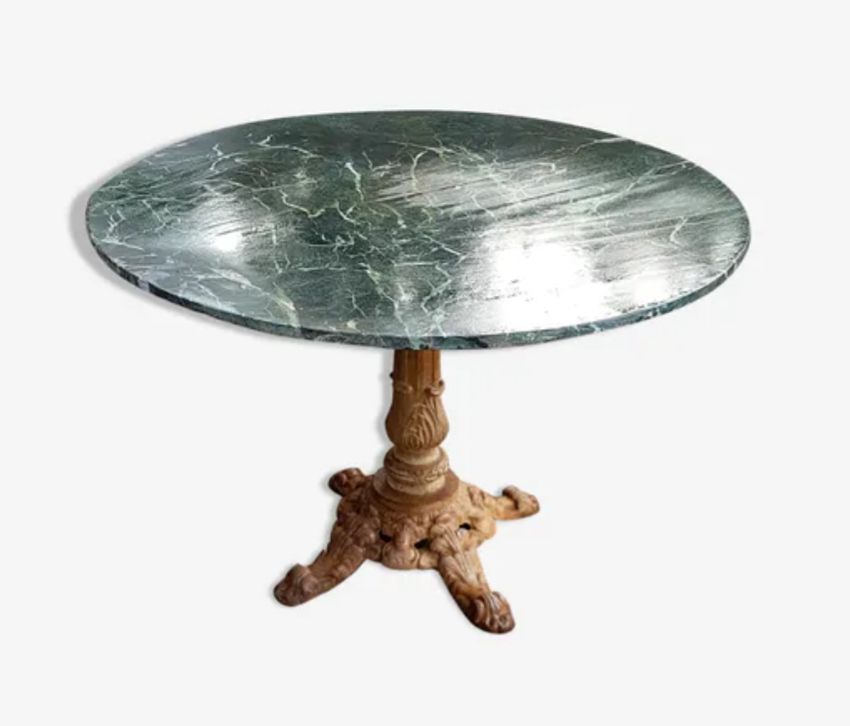 Beau gueridon en marbre et pied en fonte , belle patine