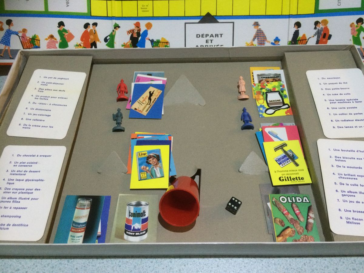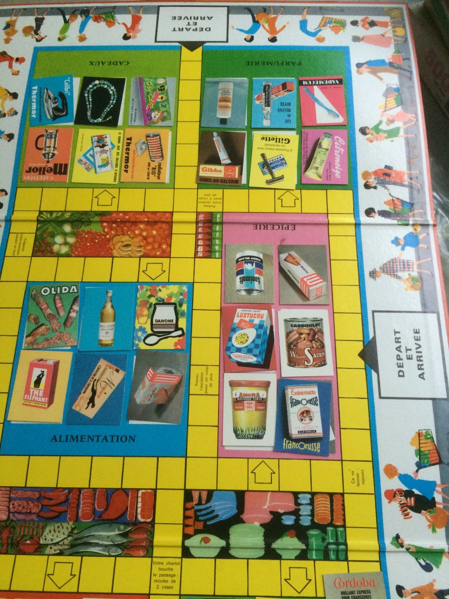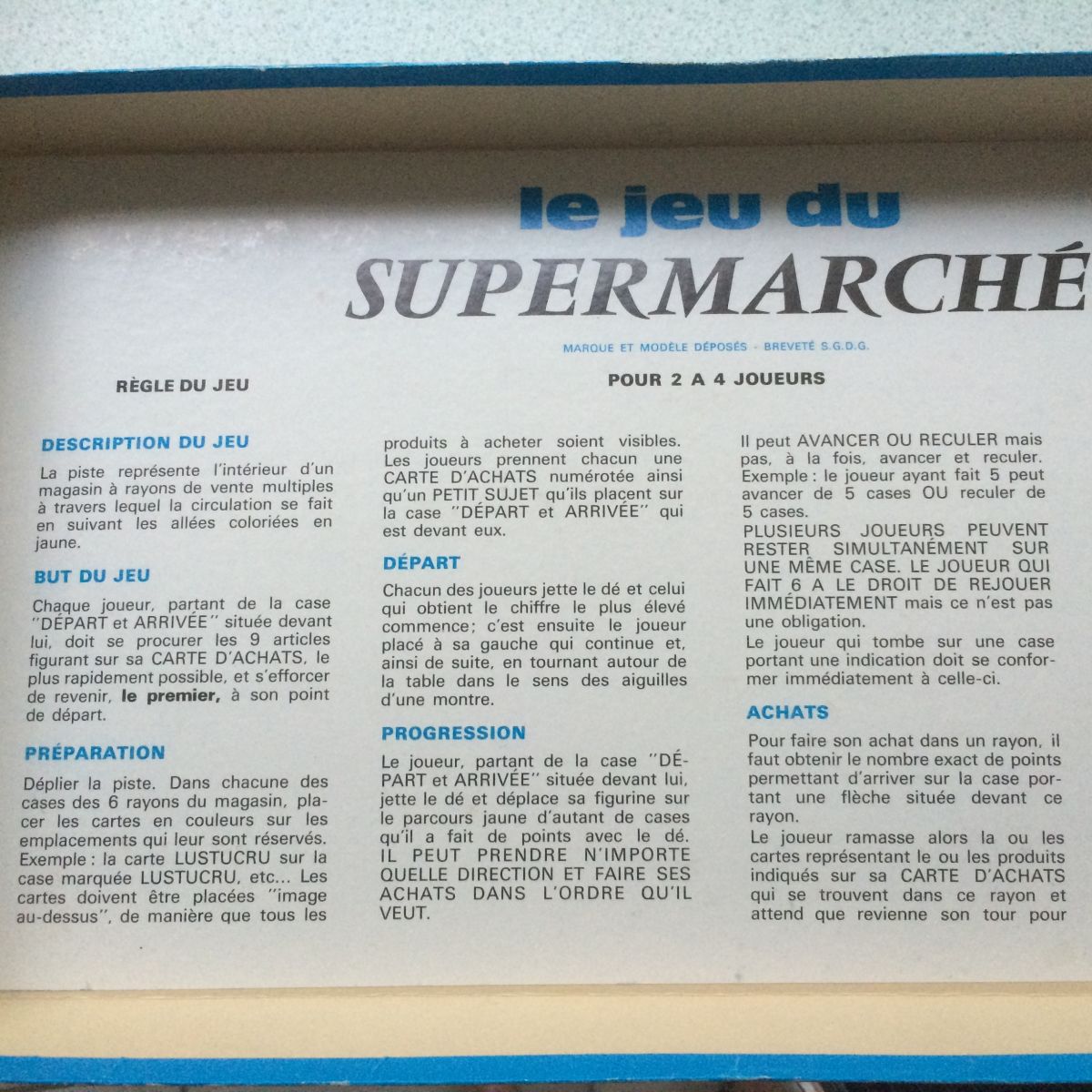 Rare ! Jeu vintage des années début 60. Jeu de plateau pour 2 à 4 joueurs à partir de 6 ans. Se joue avec un dé (fourni) et on avance sa figurine sur les cases, pour acheter les produits exposés dans les rayons, muni de sa liste de course.