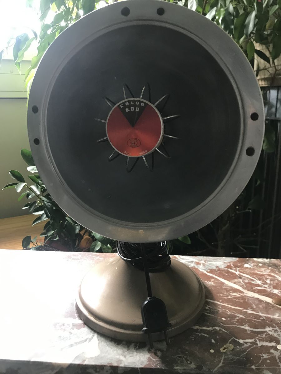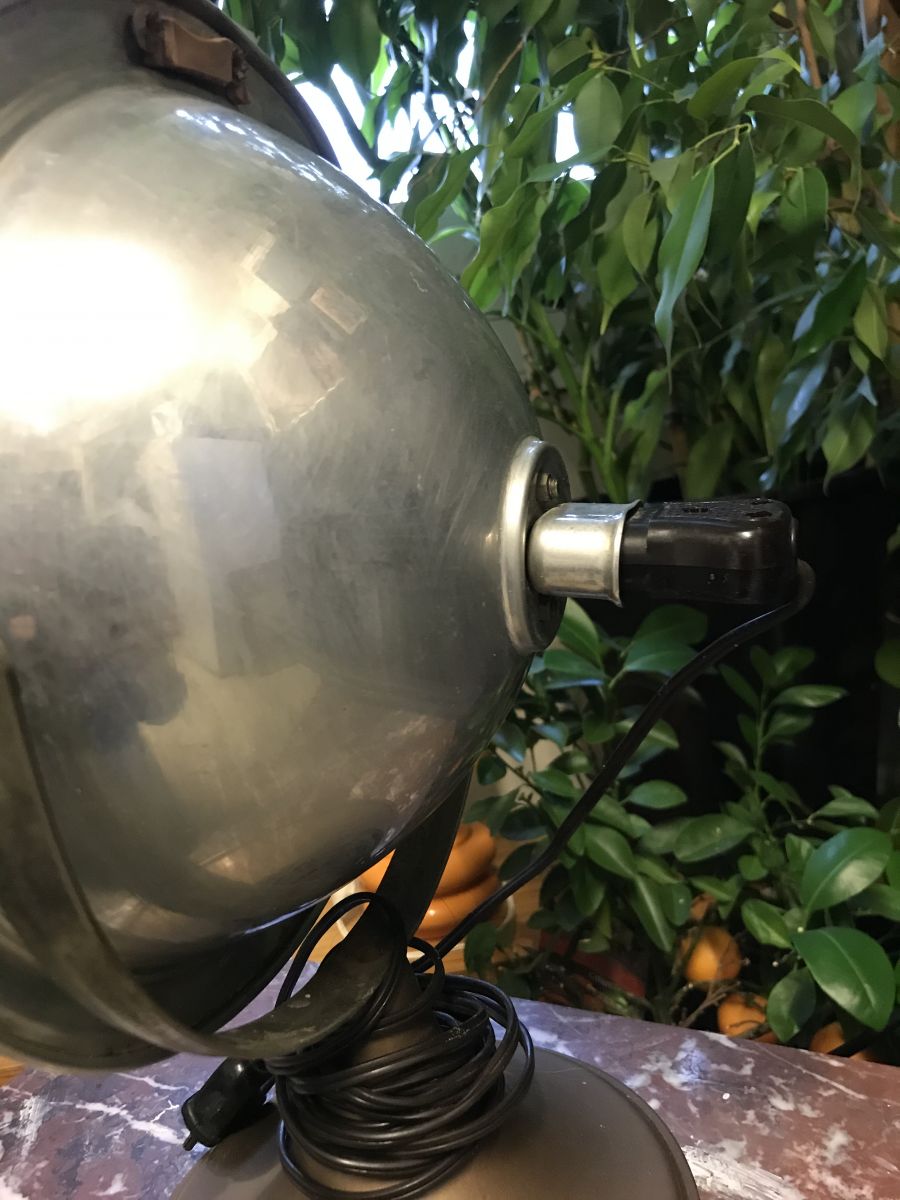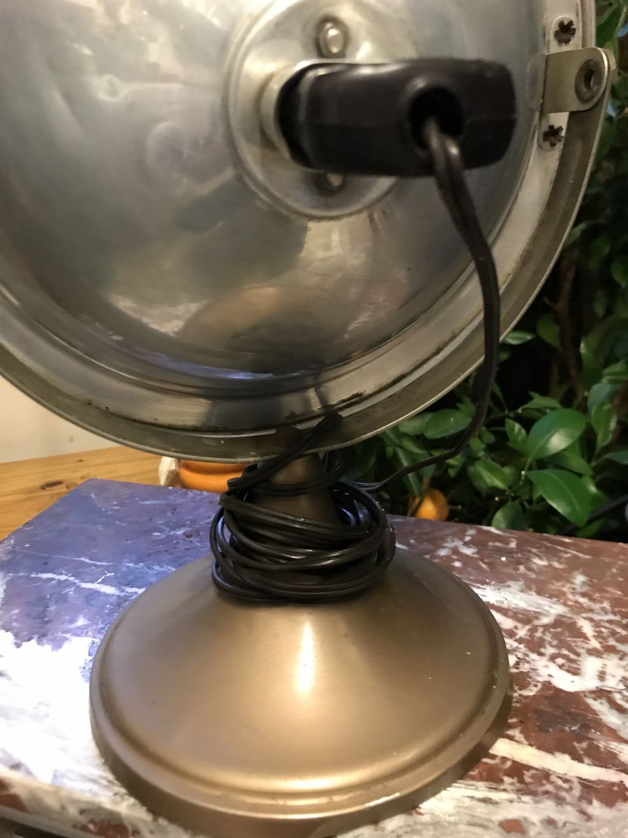 Lampe ancien radiateur parabolique Calor vintage année 1950,1960. Esprit atelier,métal, deco industriel hauteur 42cm diamètre 30cm diamètre dû pieds 15cm