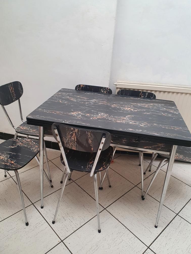 Ensemble des années 1960 table a manger assorti De 6 chaises et un bahut en très bonne états imitation marbre noire le tout en très bonne états