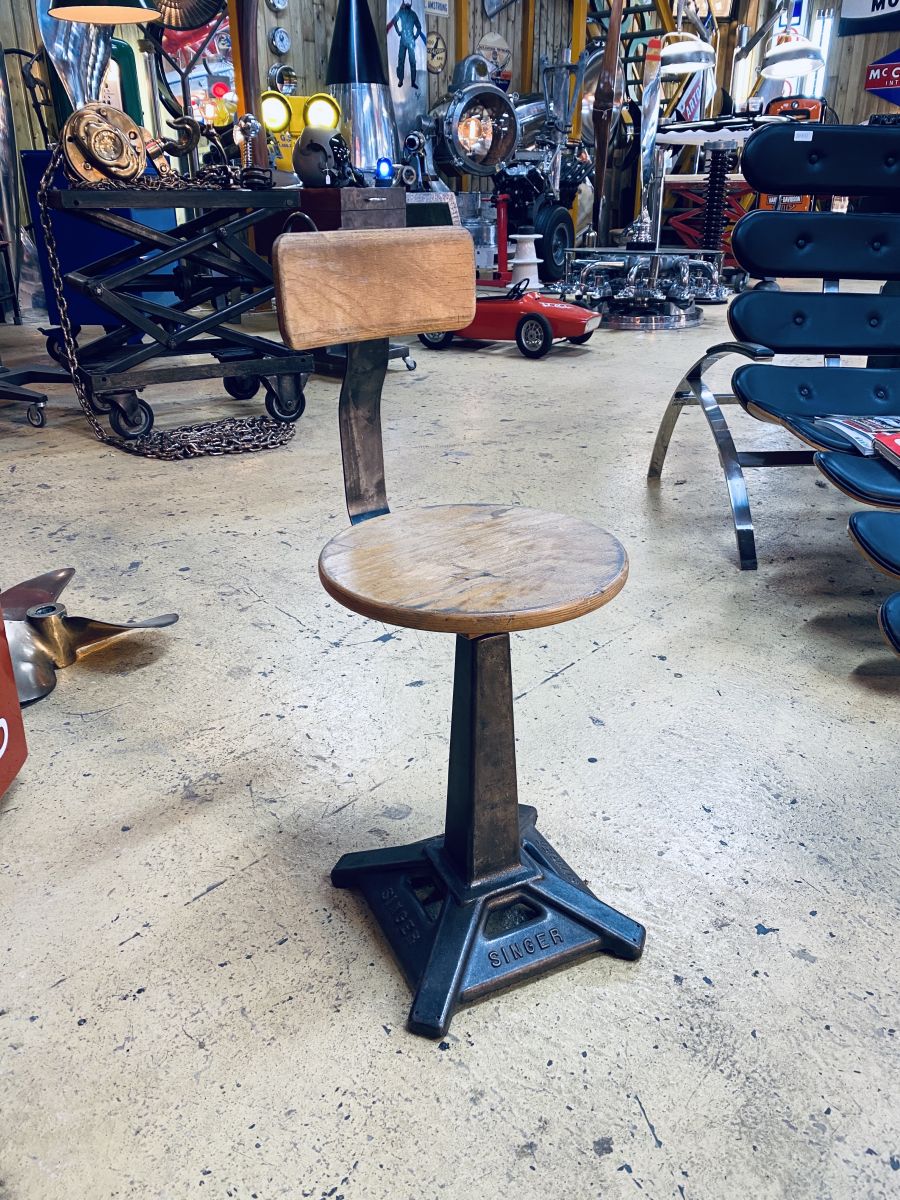 Dossier ajustable, SINGER marqué dans la masse sur le pied. Pièce rare!