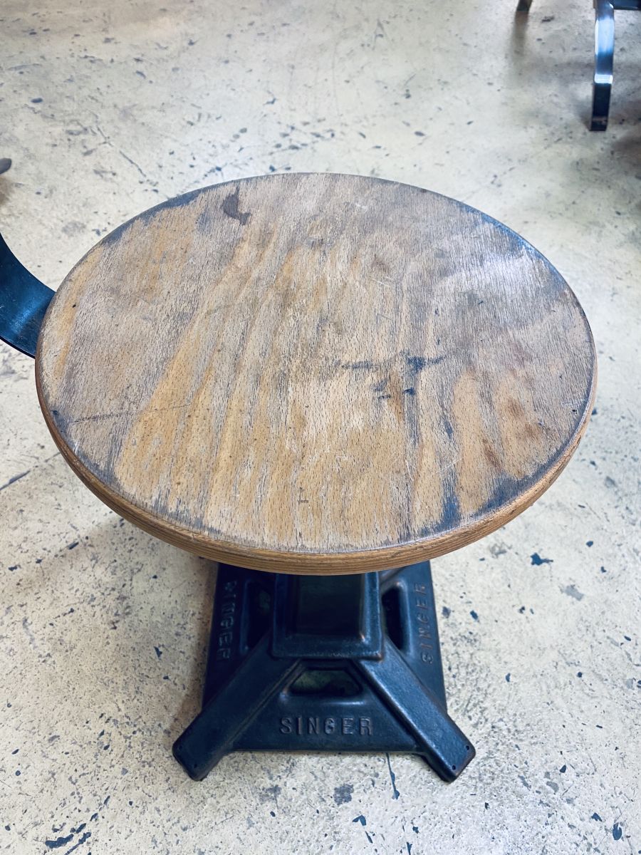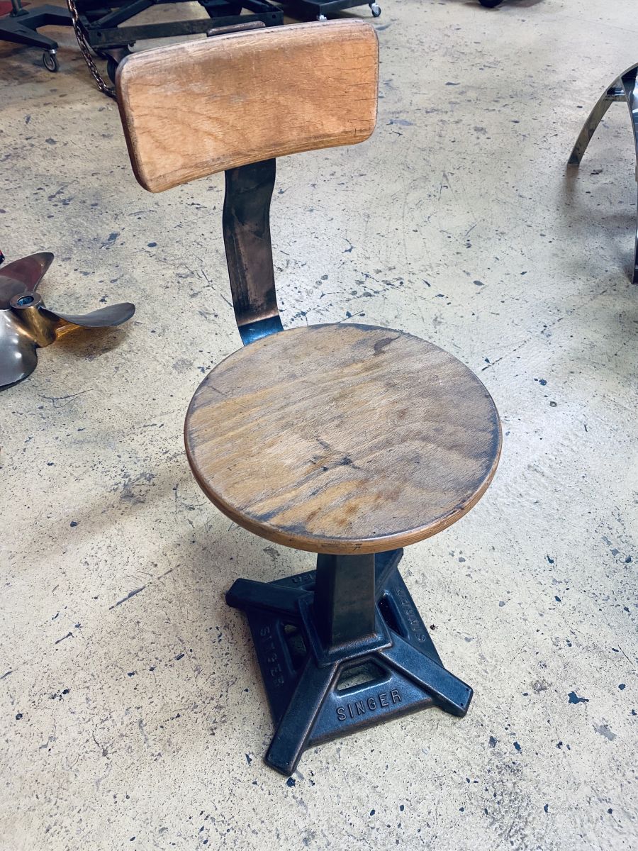 Authentique chaise de machine a coudre Singer.