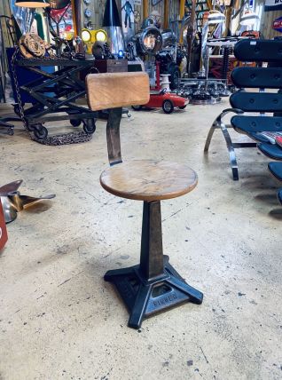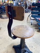 Pied en fonte, dossier et assise en chêne massif. Très bon état et entièrement fonctionnelle.