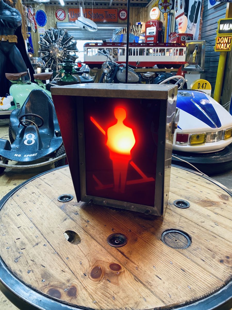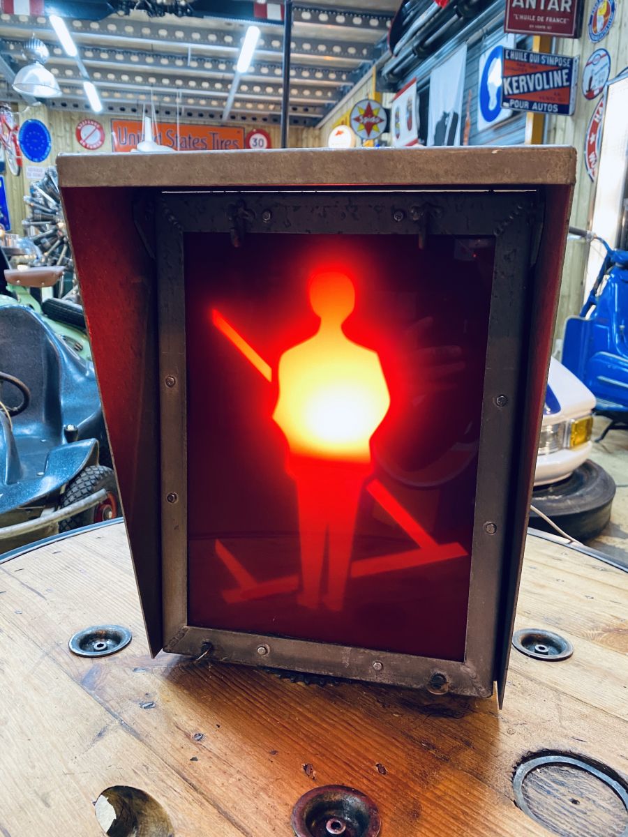 Feu de passage piéton années 70 france. Entièrement dans son jus, avec support murale.