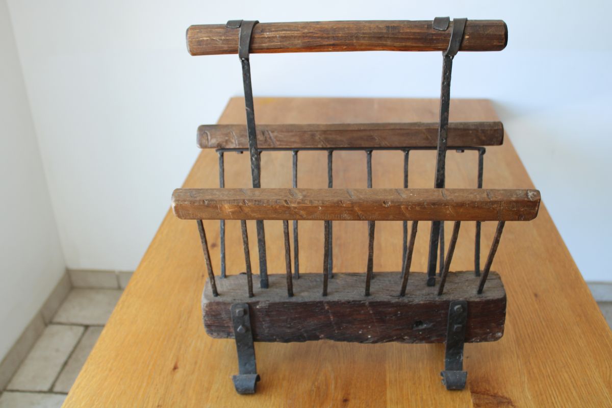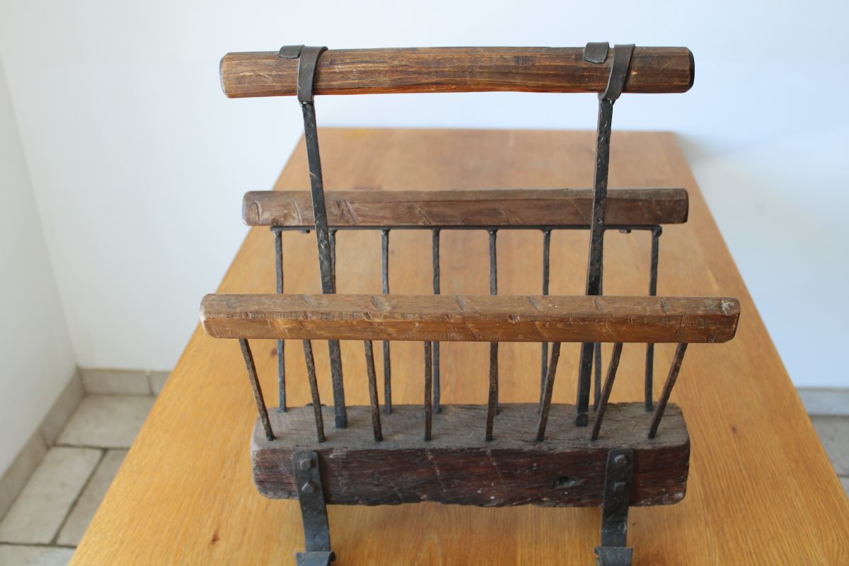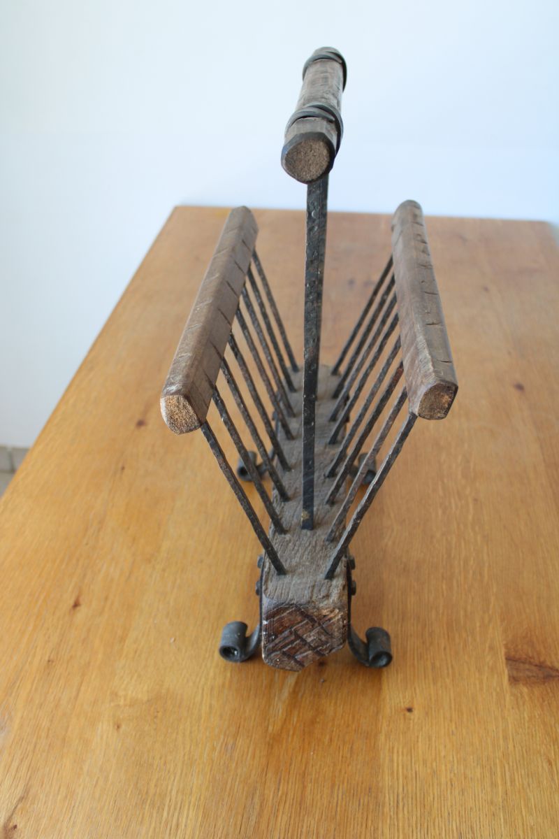 Porte revue vintage fin années 70. Matière fer forgé et bois de chêne.