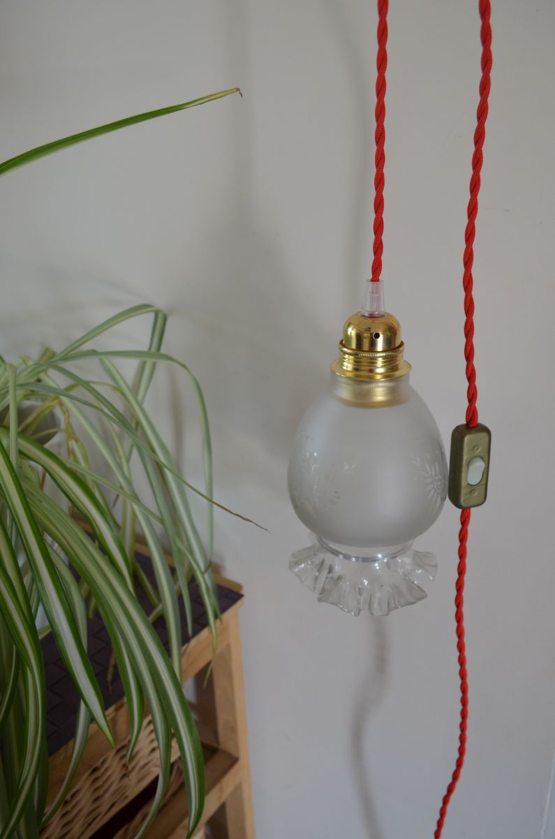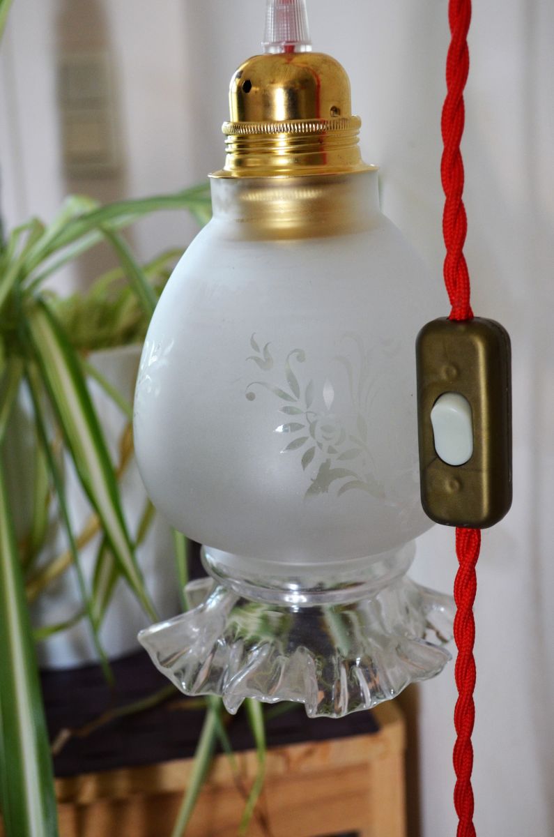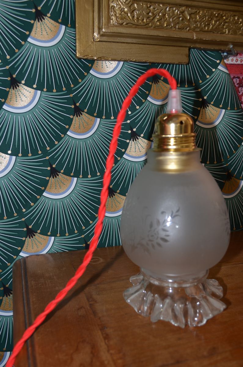 Lampe baladeuse vintage créée par mes soins à partir d'un verre chiné.
