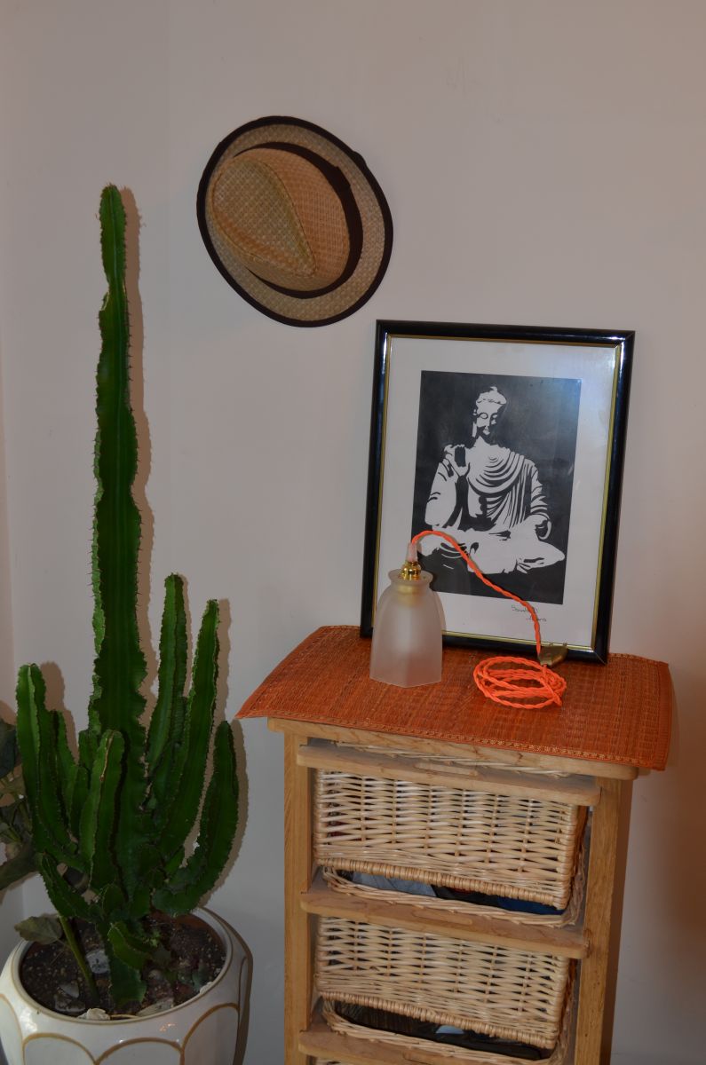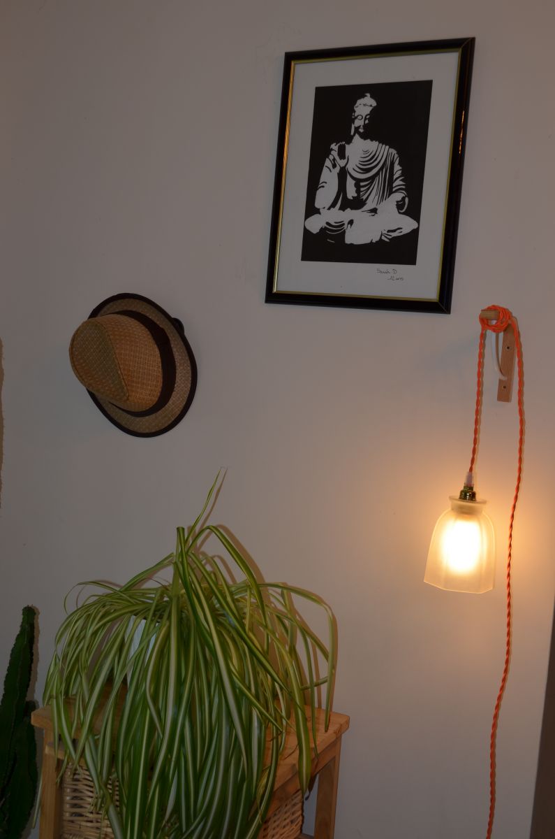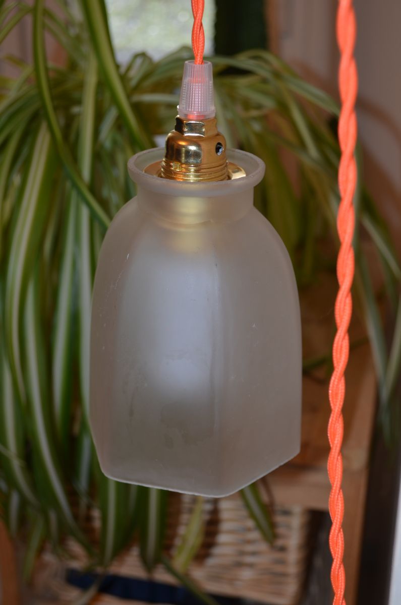 Lampe baladeuse vintage créée par mes soins à partir d'un ancien globe de lustre.