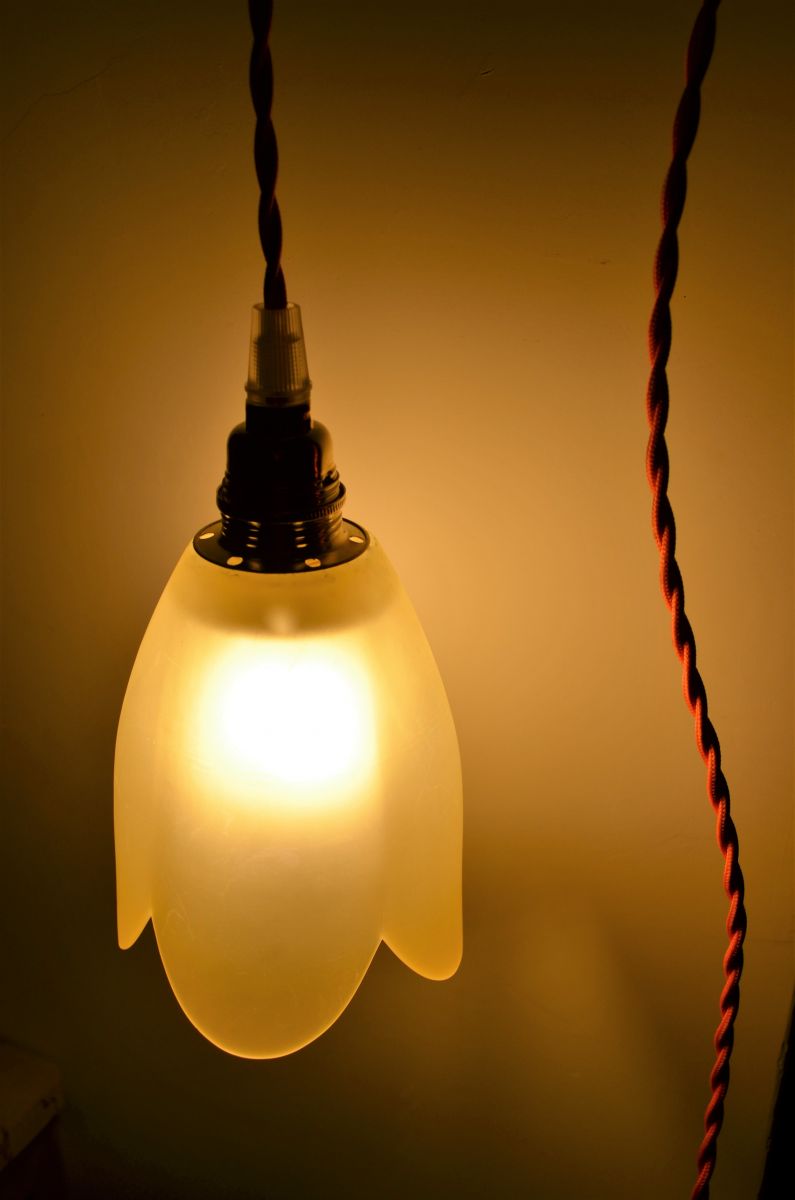 Electricité entièrement refaite : douille laiton B14, câble torsadé en textile de couleur de 2,5 m, fiche mâle, interrupteur.