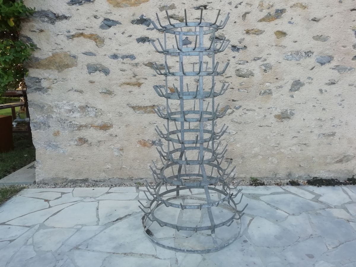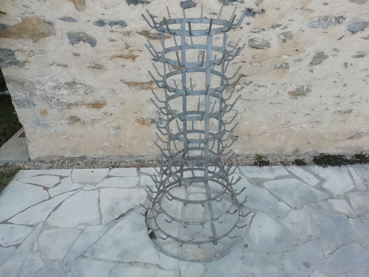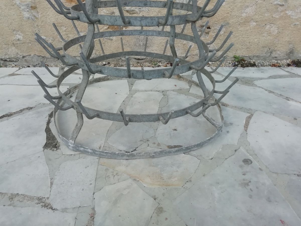 Ancien porte bouteilles hérisson en fer galvanisé, bon état malgré son age que l'on peut détourné pour une jolie déco.