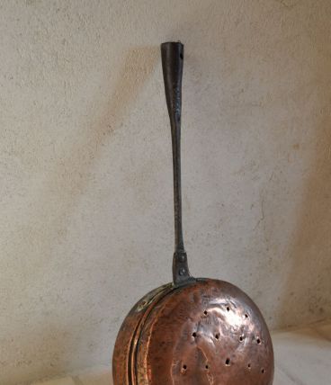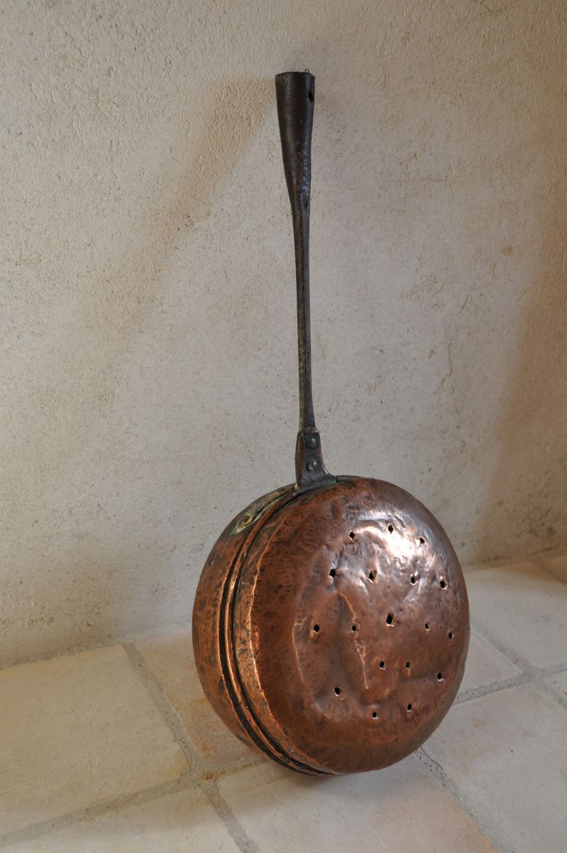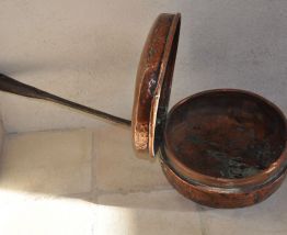 chauffe lit, bassinoire, chaufferette en cuivre, manche en acier. très ancien (ce n'est pas une reproduction)
