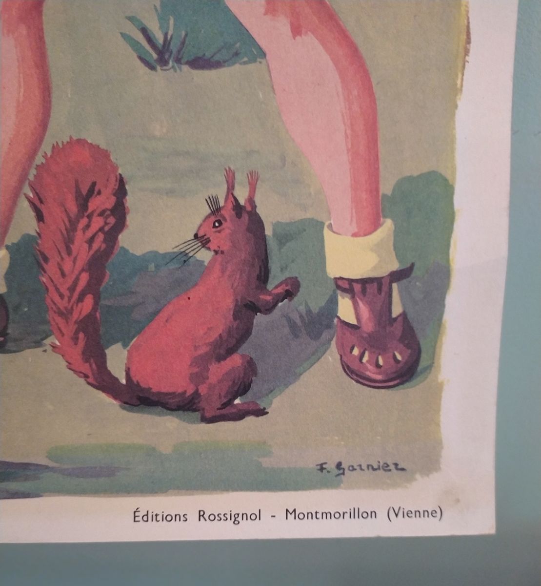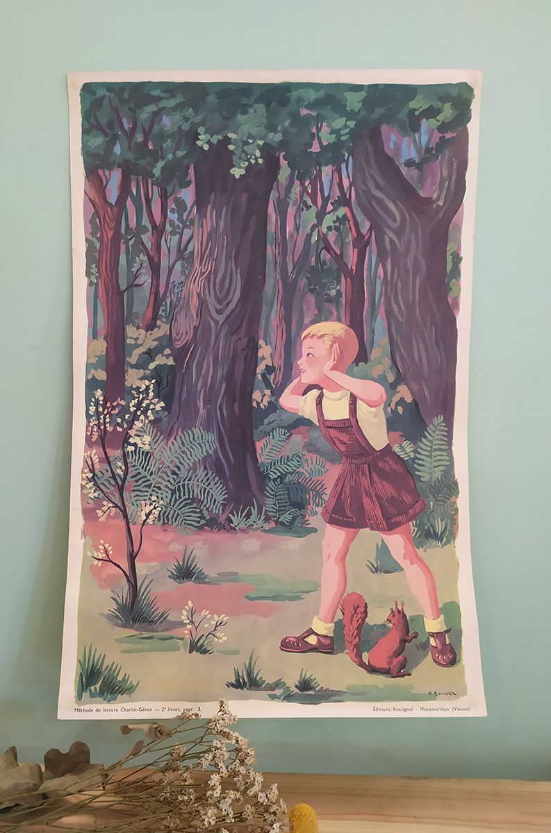 AFFICHE PÉDAGOGIQUE ROSSIGNOL "POUCET ET SON AMI L'ÉCUREUIL