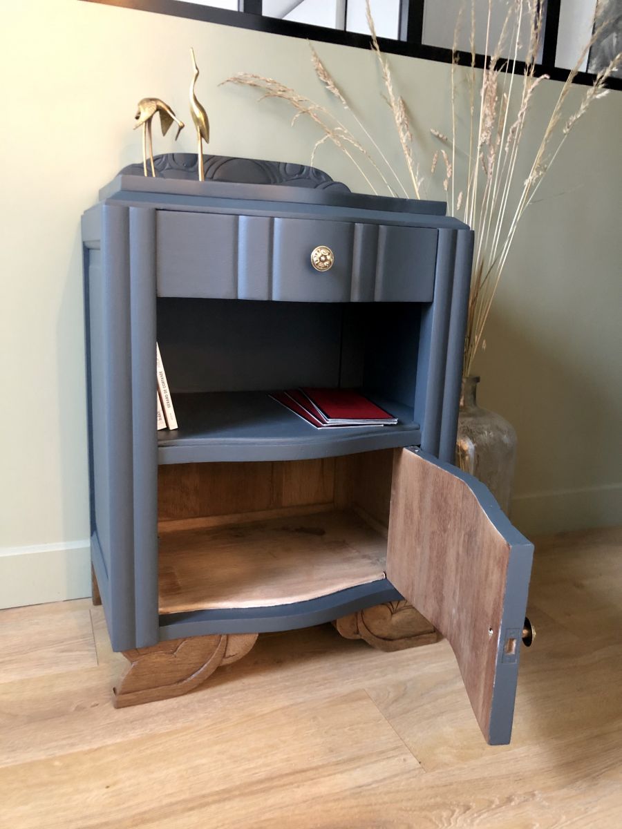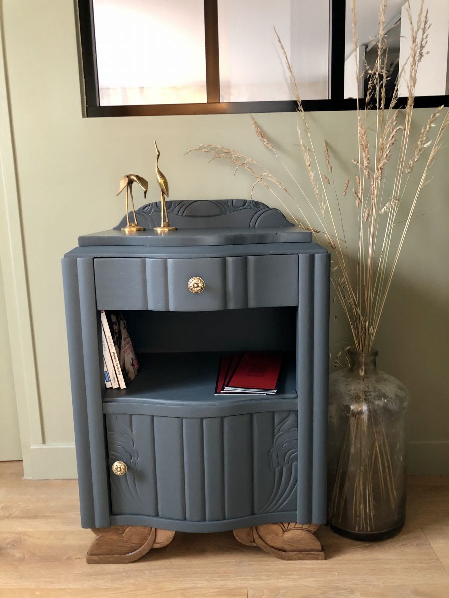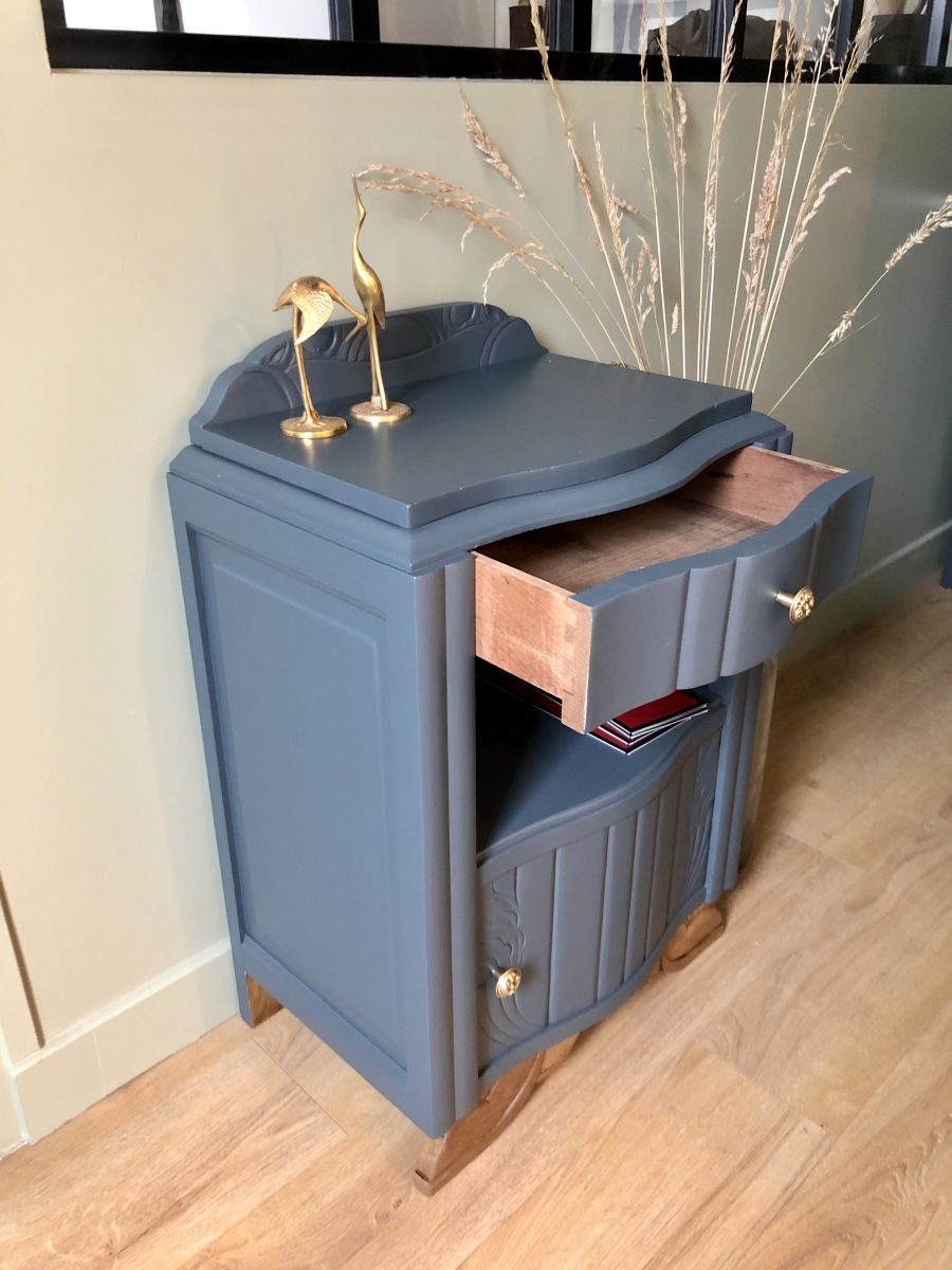 Élégant chevet ou meuble d'appoint de style Art Déco avec de jolis pieds moustache.