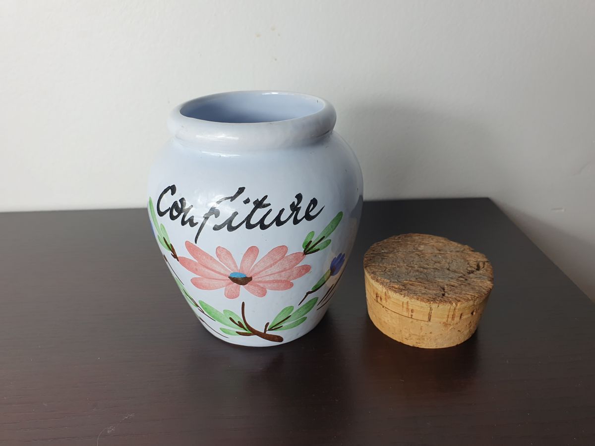 Pot à confiture avec bouchon liège vintage.