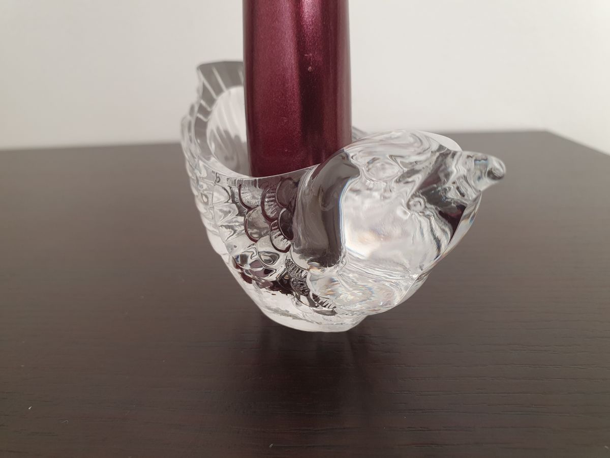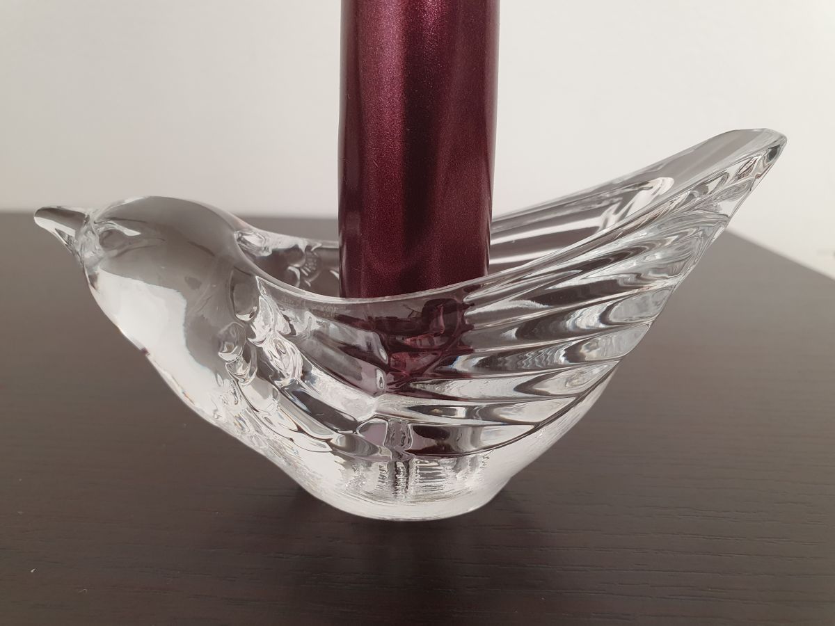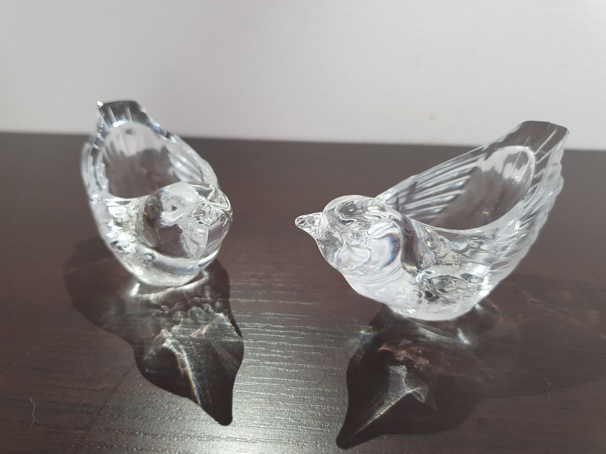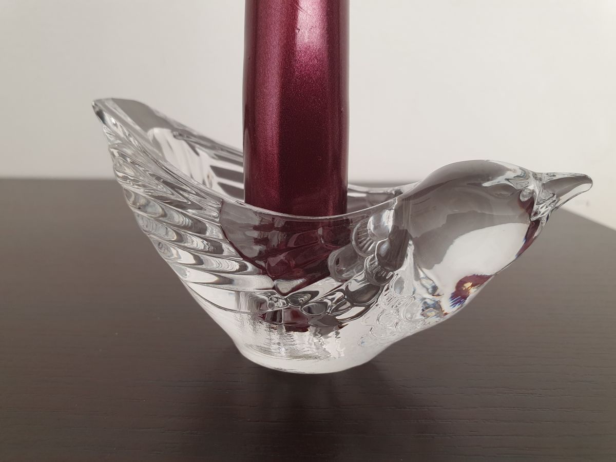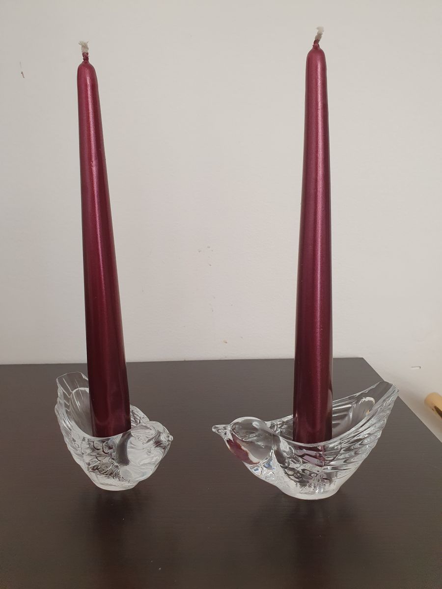 Paire de jolis bougeoirs oiseau en cristal.