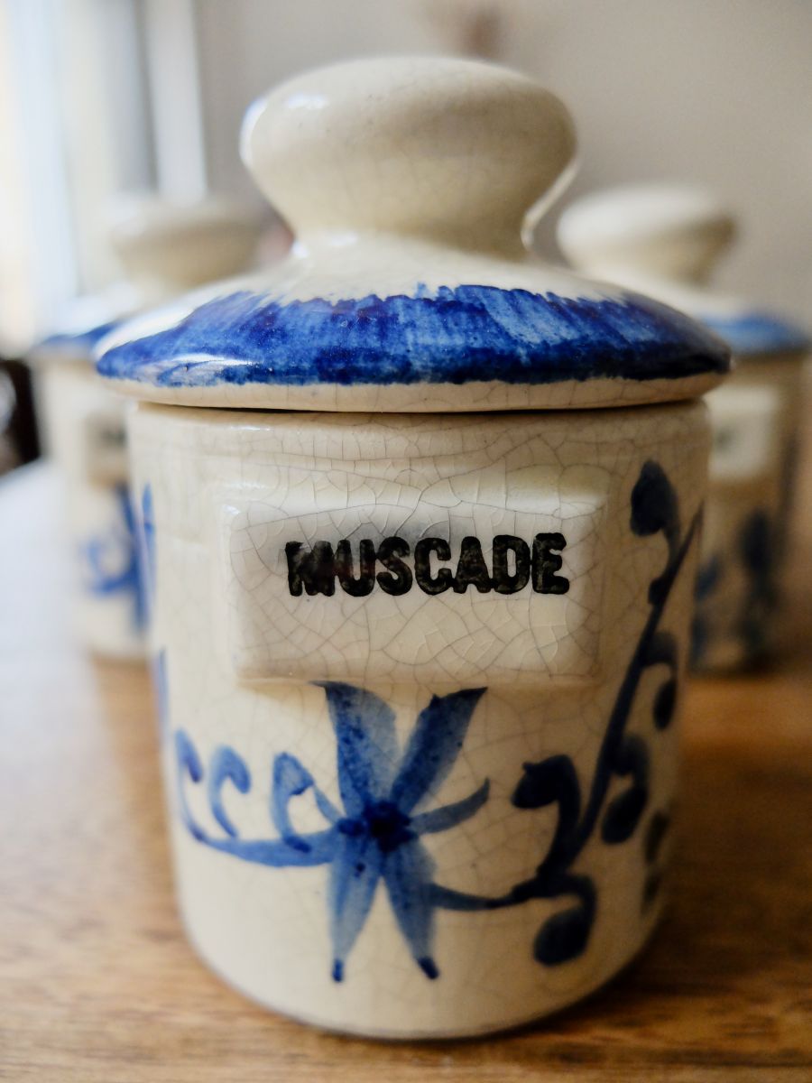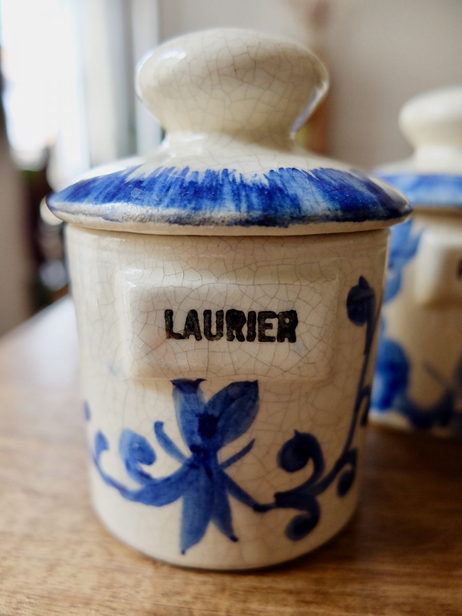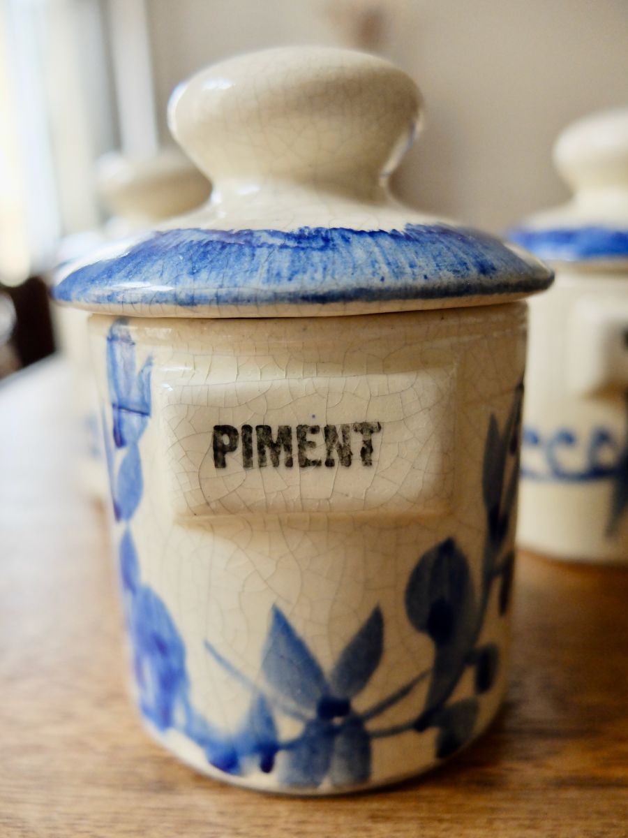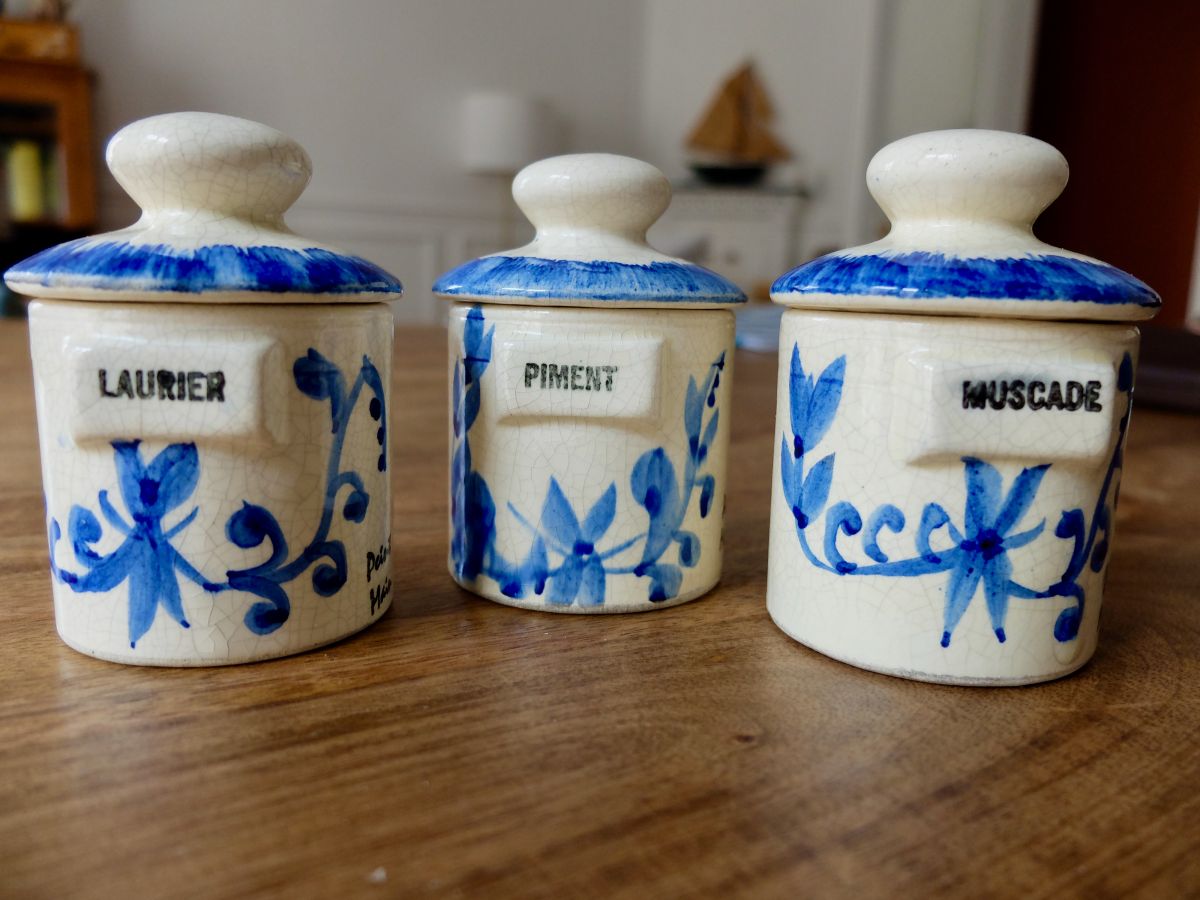 Bel ensemble de 3 petits pots à épices en céramique. Joli motif bleu qui inspire l'air de la Provence !
