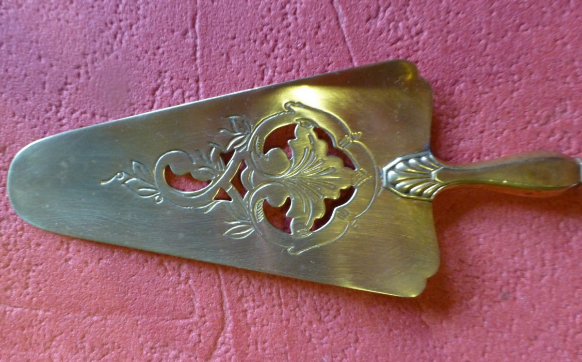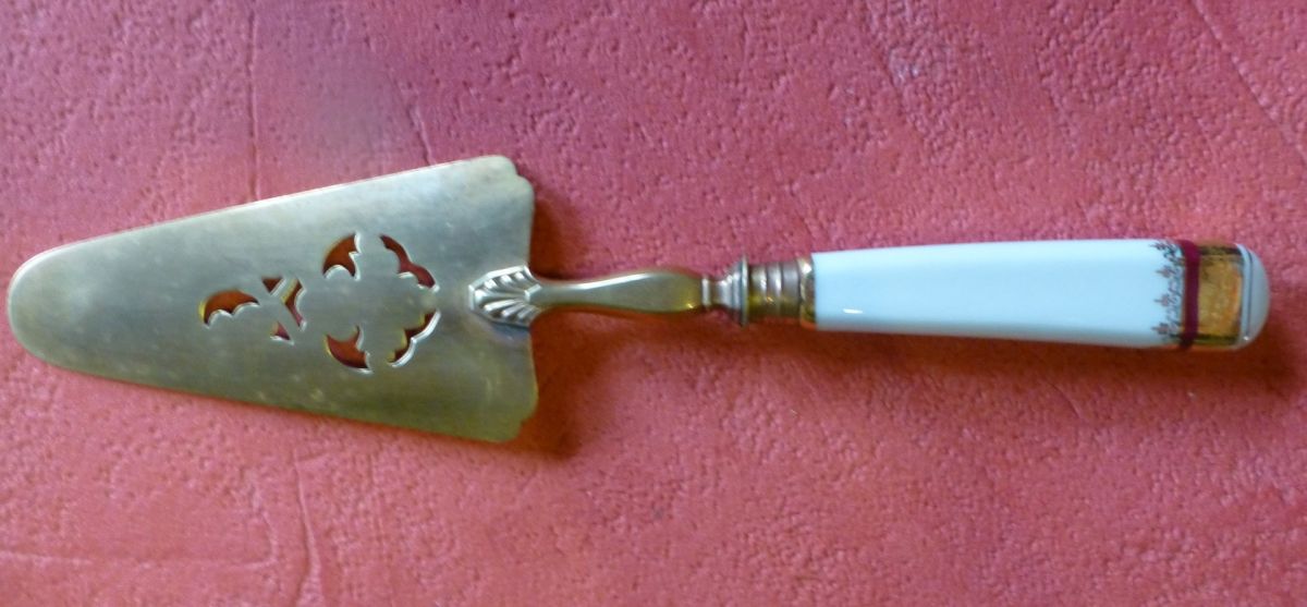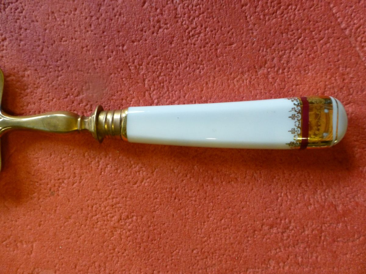 Le manche est décoré d'un délicat motif floral doré entouré d'un liseré bordeaux.