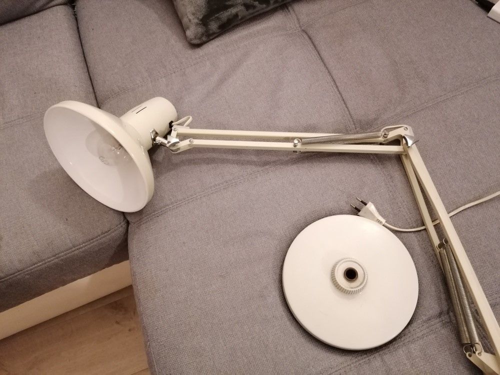 Lampe Ledu articulée métal blanc sur socle. Années 1970
