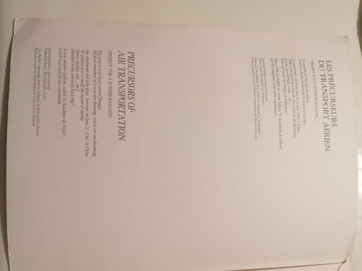 Thème : Avion, Aviation, Les précurseurs du transport aérien.Format : 29,5 x 11 cm. Édition : Service Publicité et Créativité Air France. Impression : Imprimerie Debar, Reims.