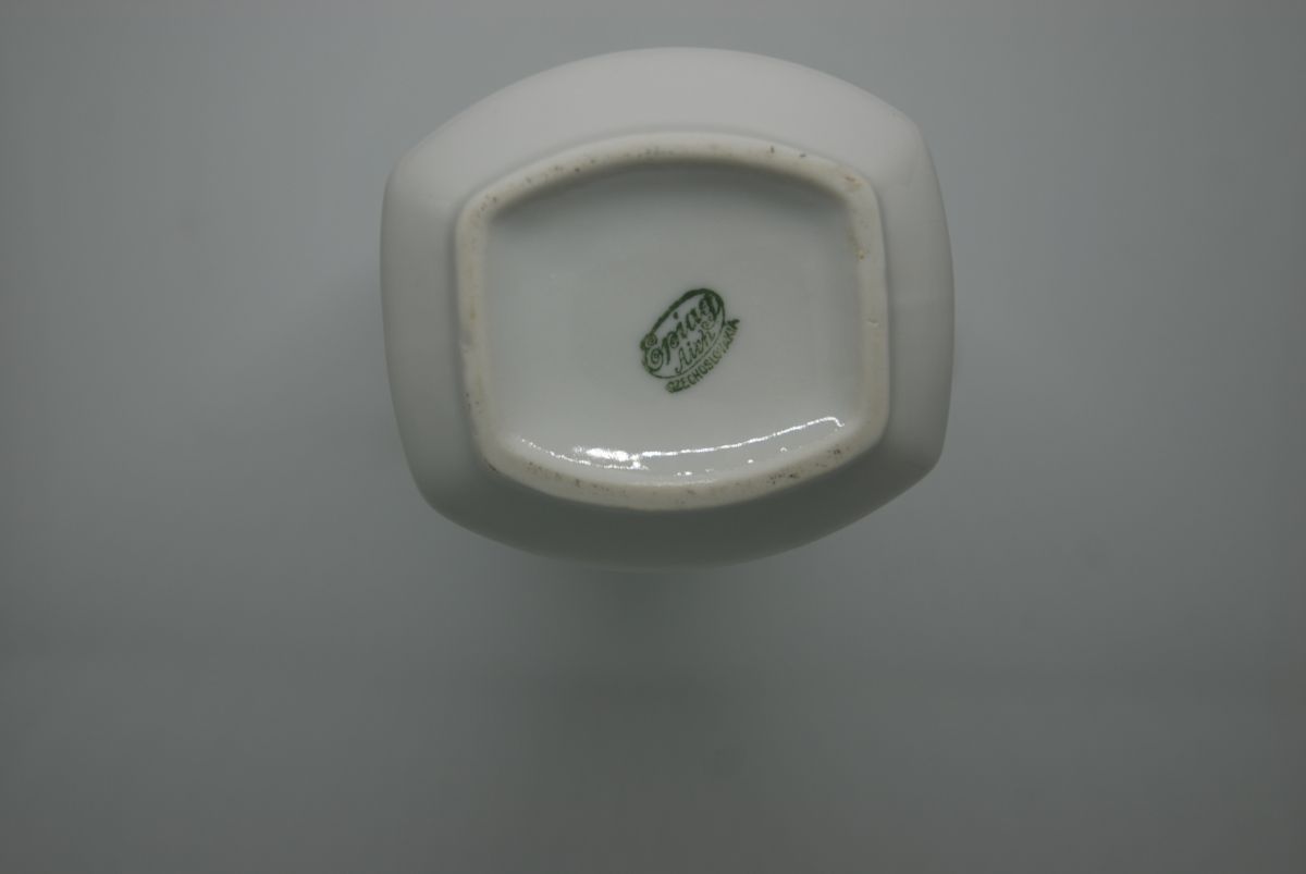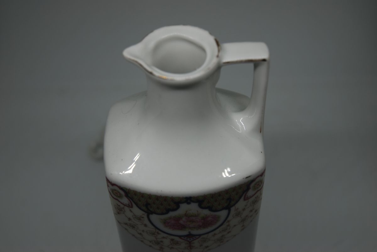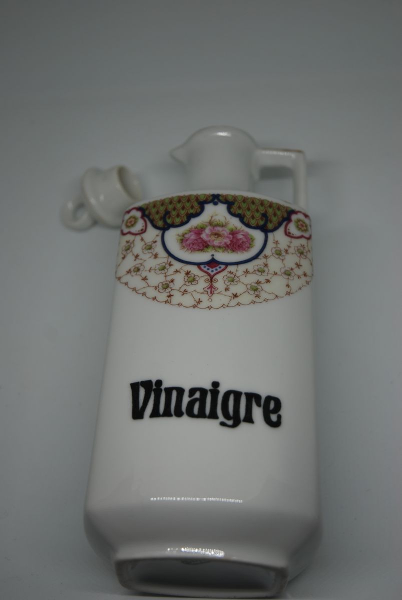 Bouteille à vinaigre Epiag, porcelaine de Tchécoslovaquie, en bon état avec son bouchon d'origine. Les dorures sur la porcelaine sont effacées par endroits mais le décors est en bon état. Poids de 385.