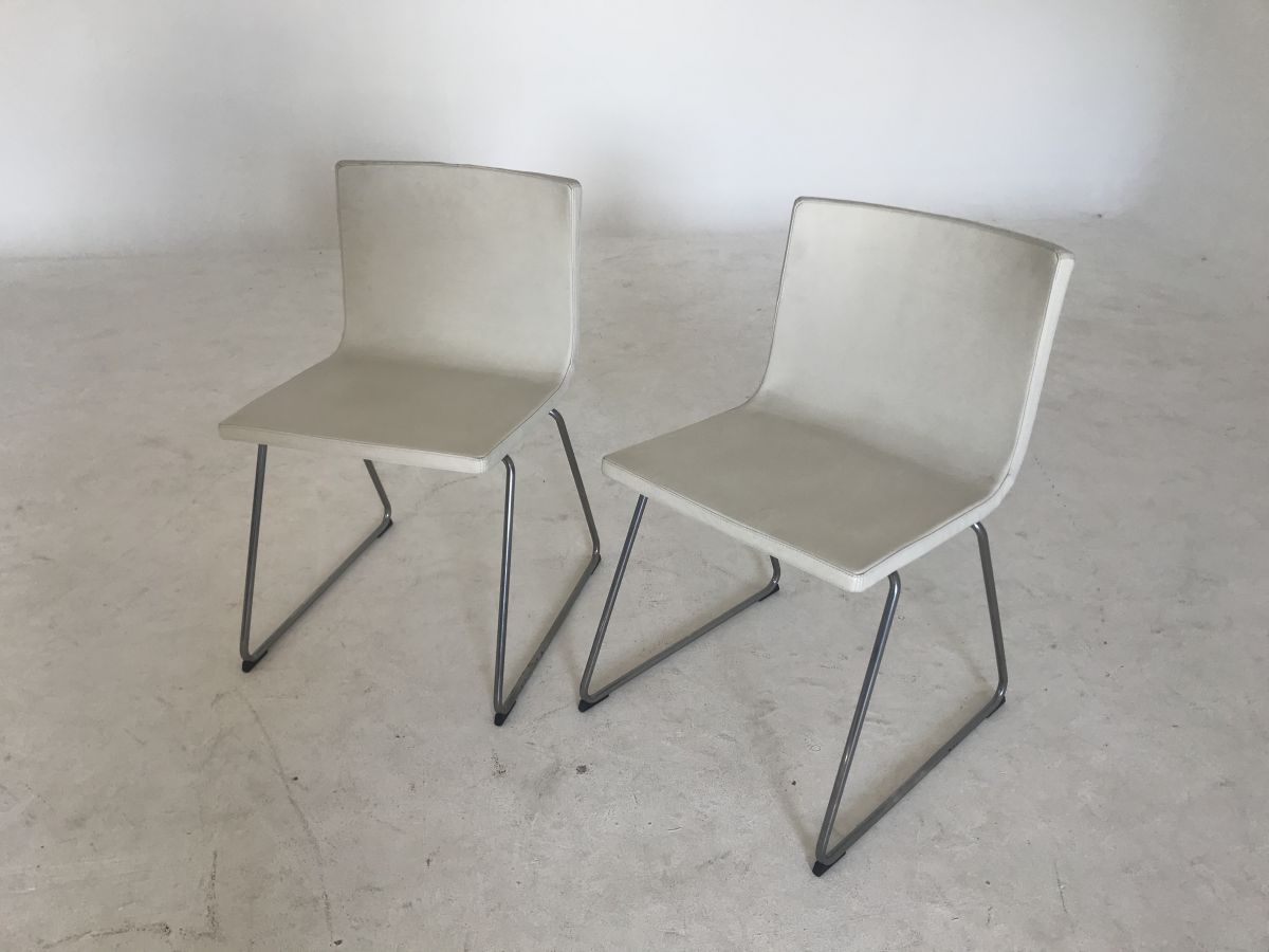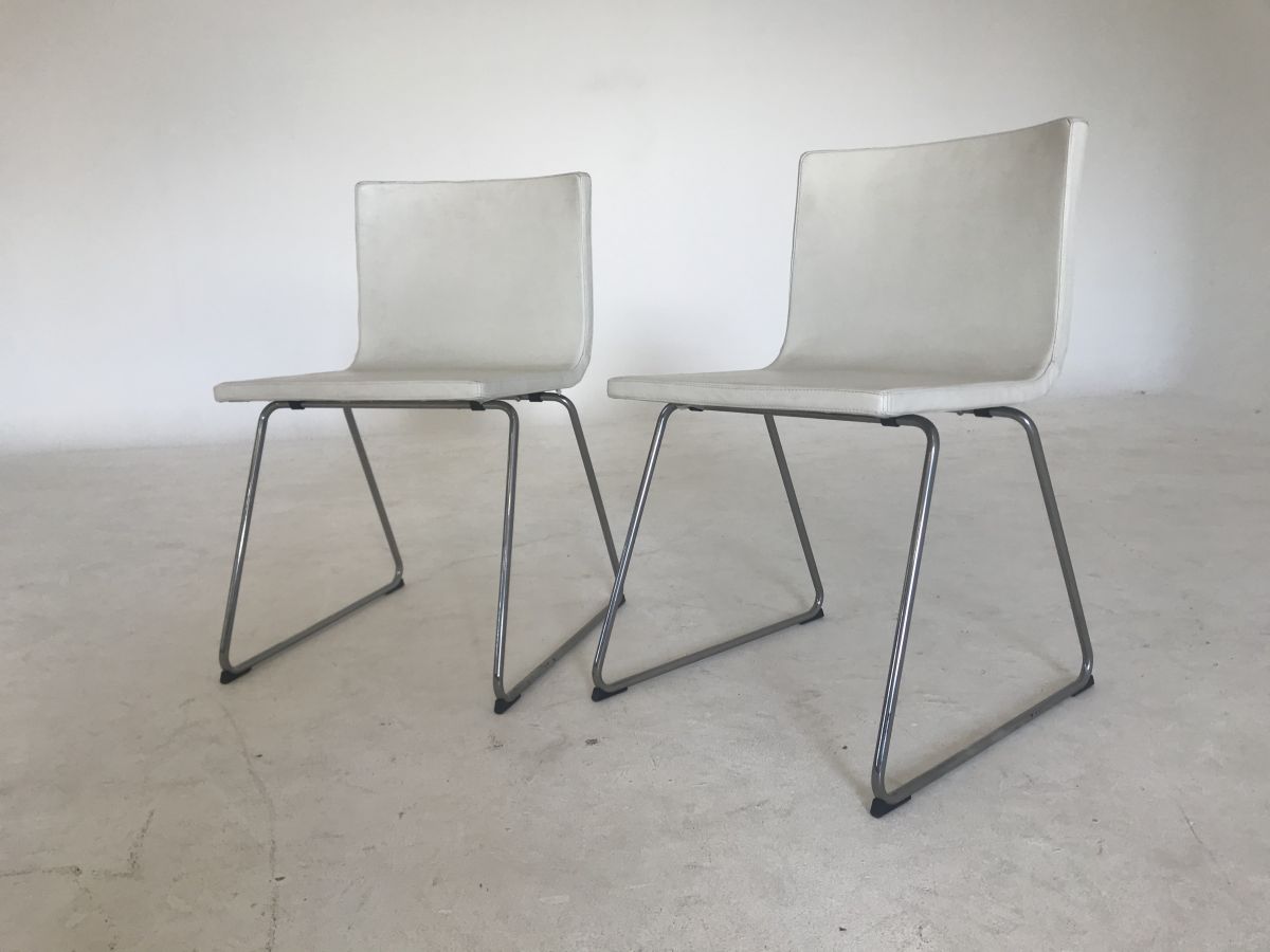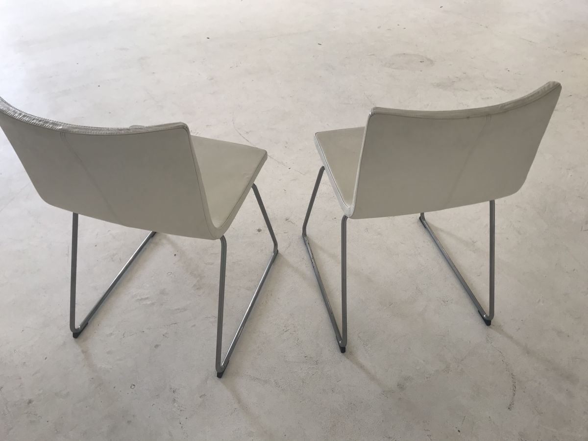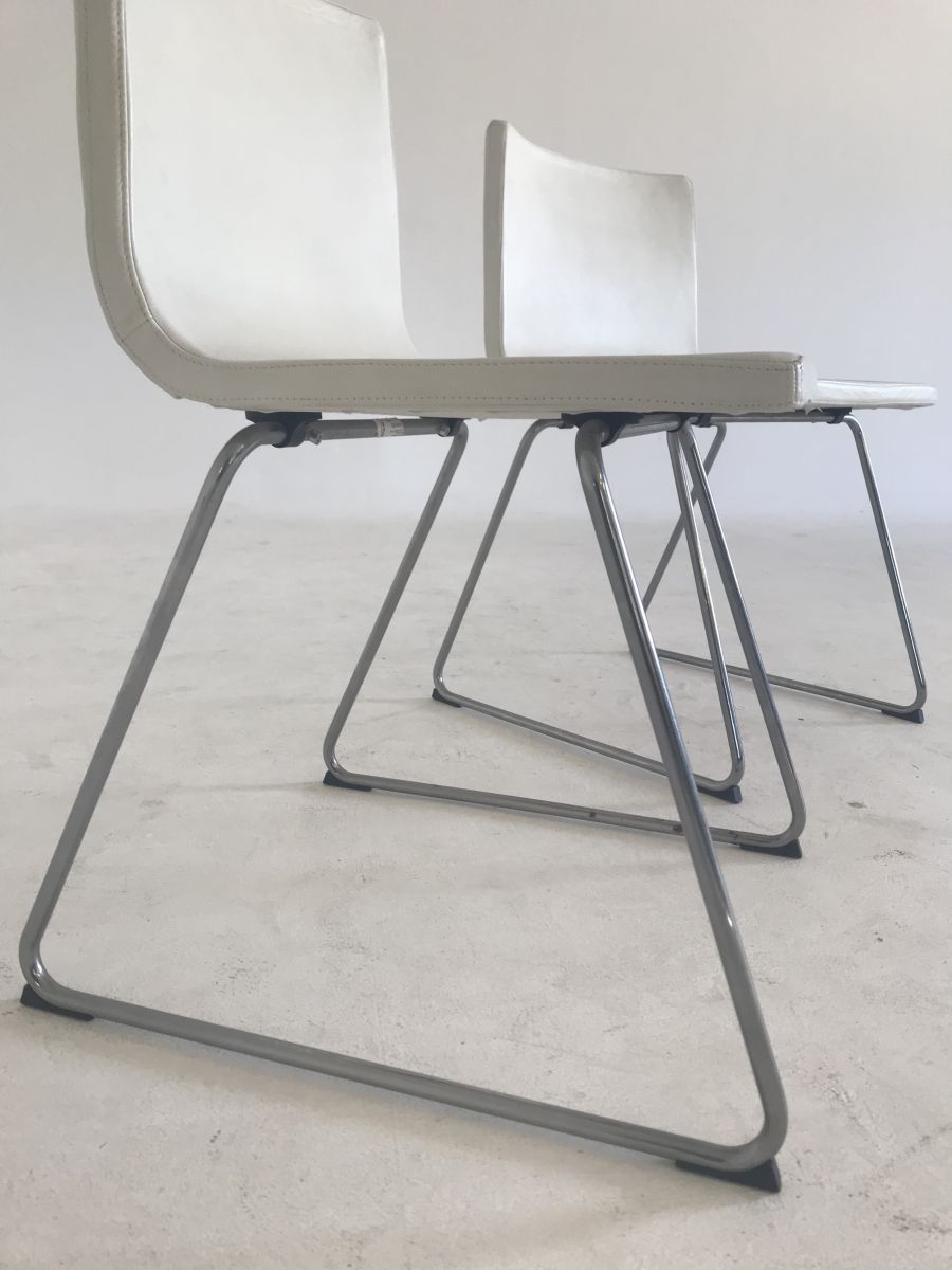 2 chaises métal chromé et simili cuir blanc
