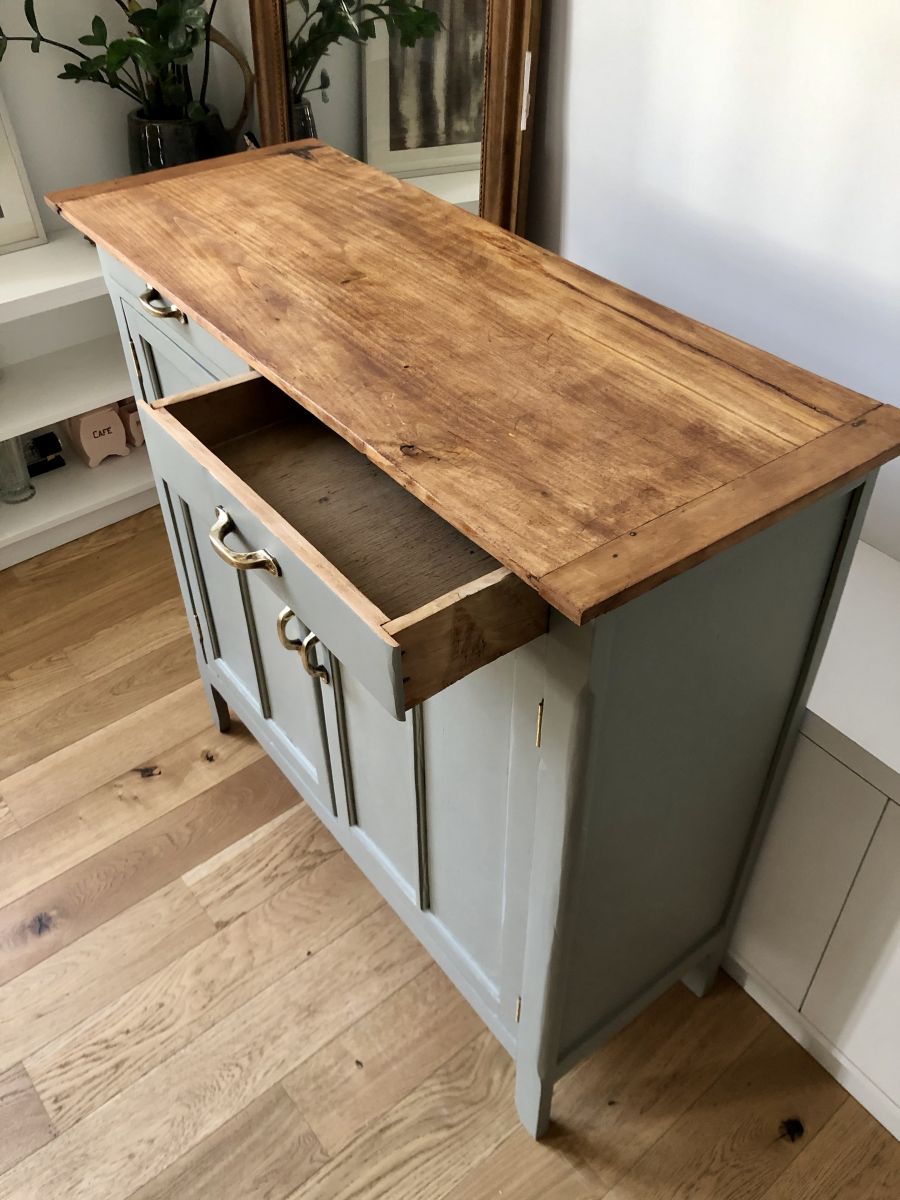 Le plateau a été cirés. Il a quelques traces du passé ce qui lui donne beaucoup de charme.