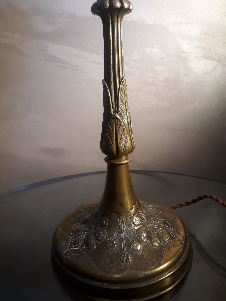 lampe pied laiton et bronze 1920 et opaline rose et blanche3