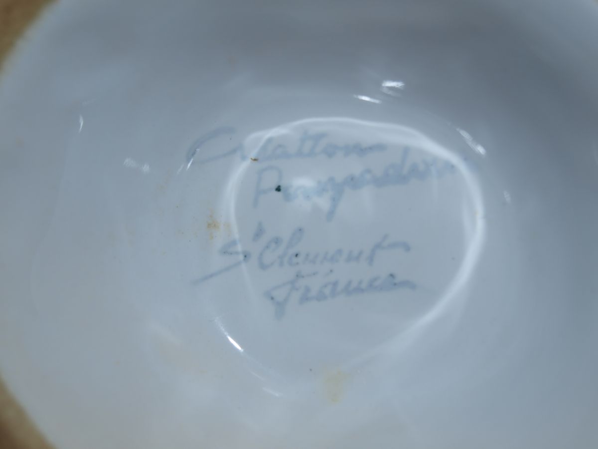 Elle est signée à la main "créations Pompadour Saint Clément - France"