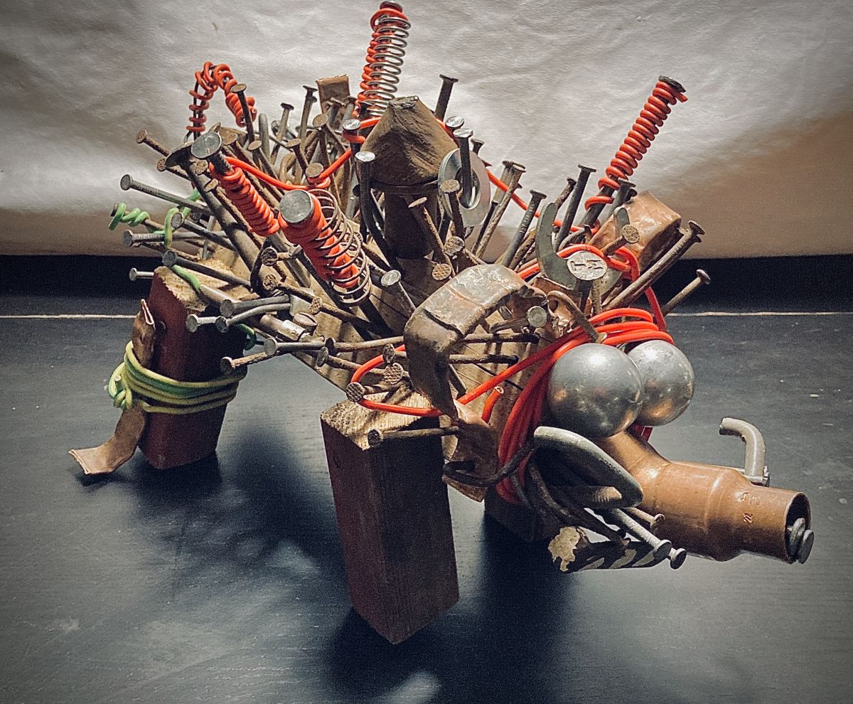 Sculpture Animal Art brut recup. Pas de signature. Magnifique création Originale en bois -métal -recup. 50cm environ de long sur 20cm de haut . Bel effet sous eclairage !