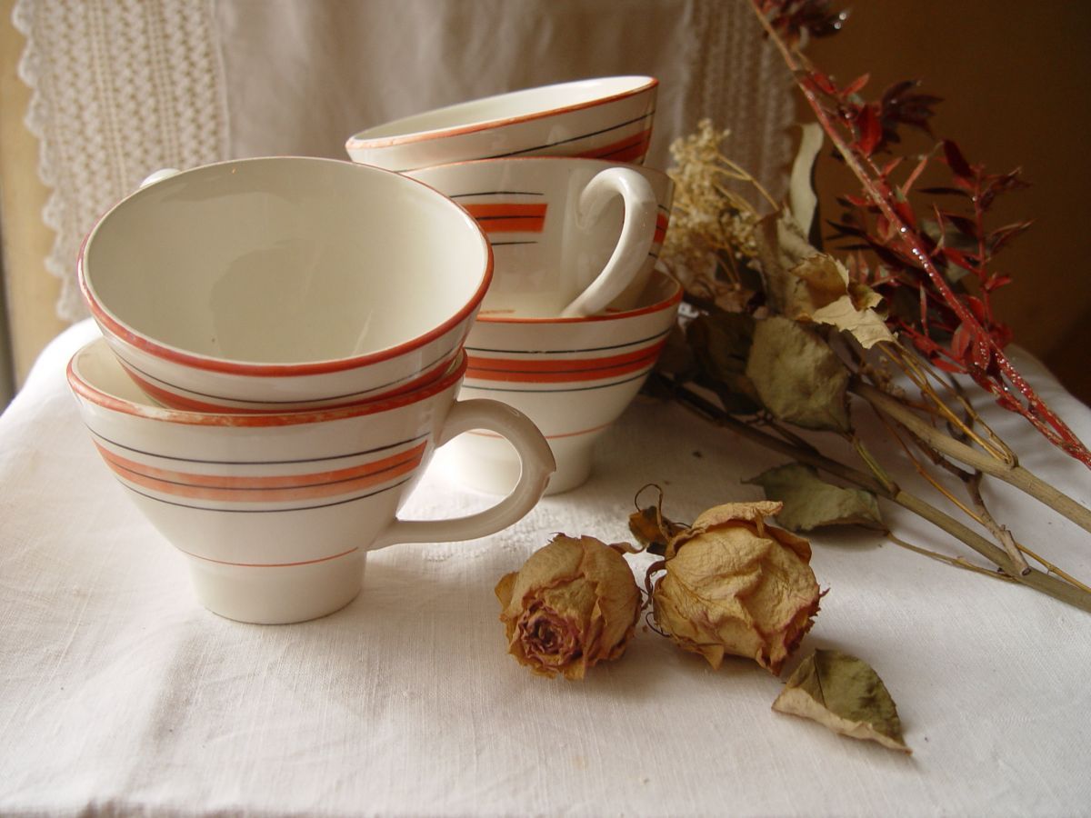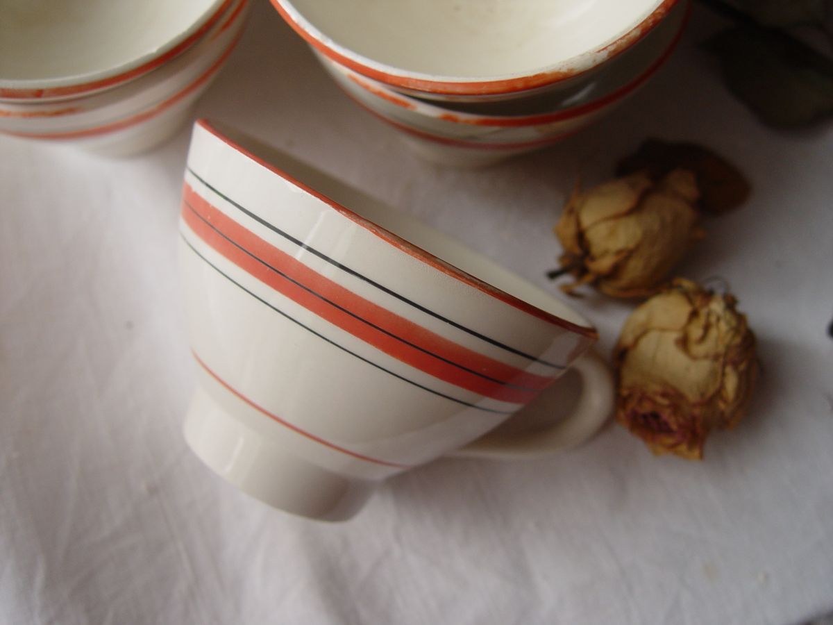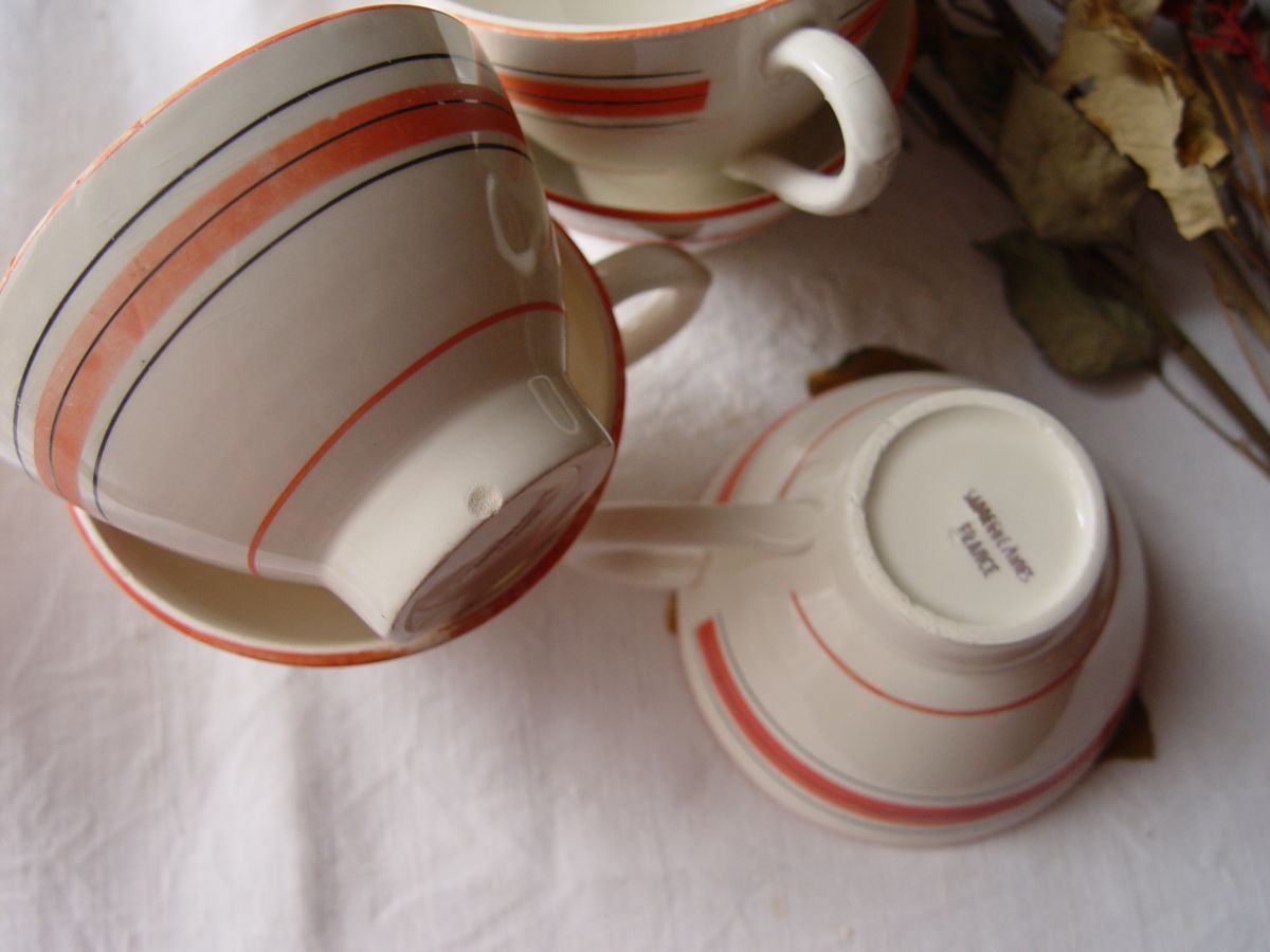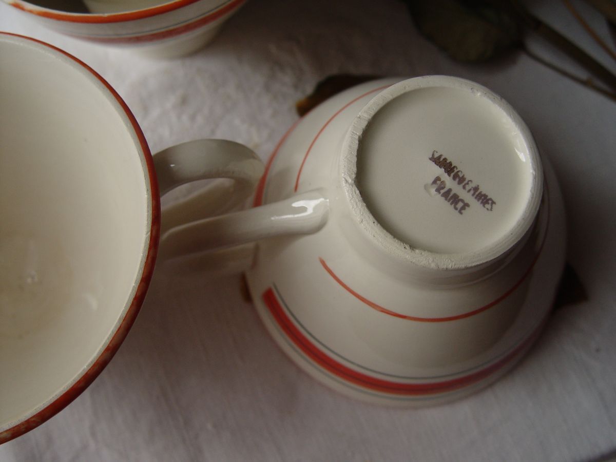 Lot de 5 tasses en faïence de SARREGUERMINES en bon état général.