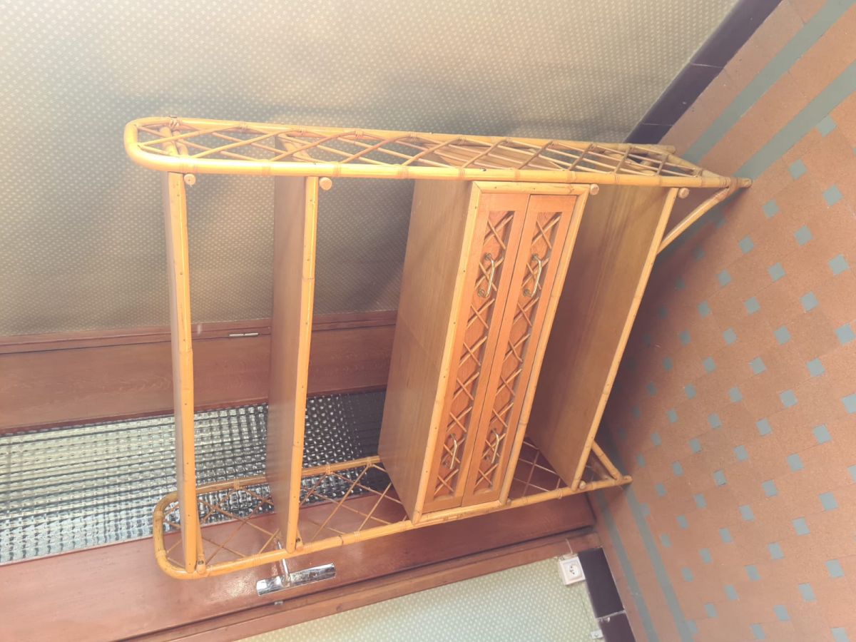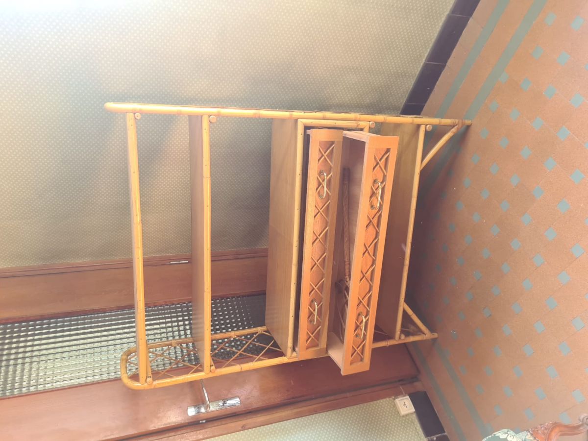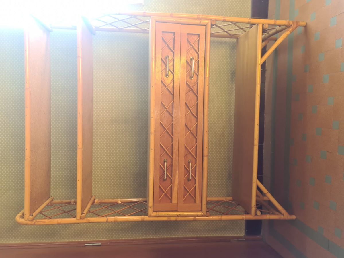 Étagère en rotin vintage années 60. Possibilité de faire un ensemble avec le lot de tables de chevet vintage assortis que je vends sur le site .Ideale dans une chambre , salon, salle de bain ...partout en faites !