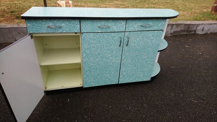 composé de 3 placards ,3 tiroirs et petites étagères sur le coté gauche
