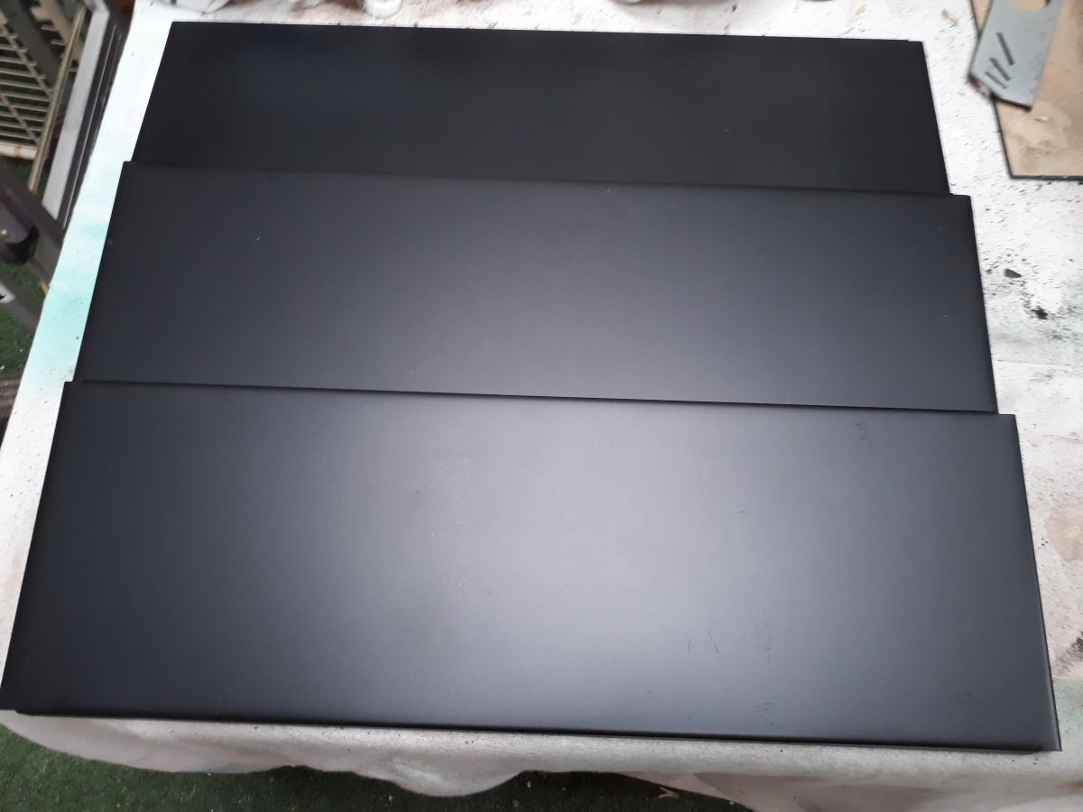 Étagère tomado strié doré et plateaux noir mat strig 1970. 60x48cm plateaux 47x15.