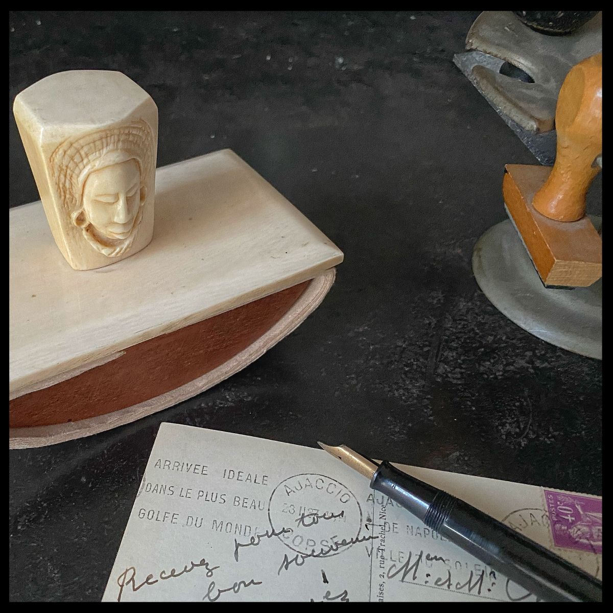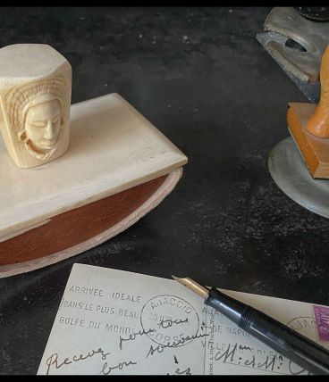 Tampon buvard à tête de femmes, en ivoire 1920/30. (Ivoire
