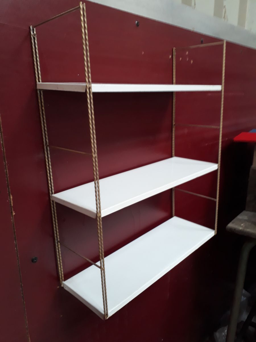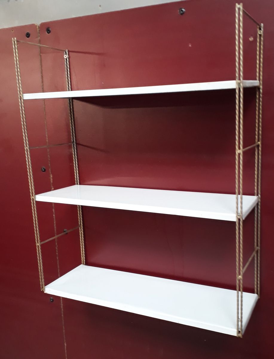 Étagère Tomado doré et plateaux blanc origine strig 1970. 60x48cm 3 plateaux 47x15.