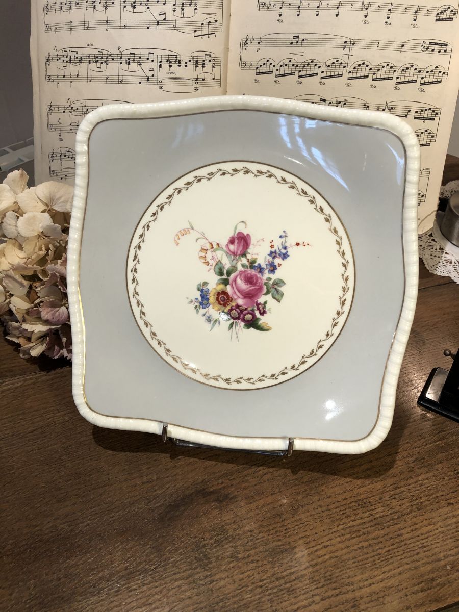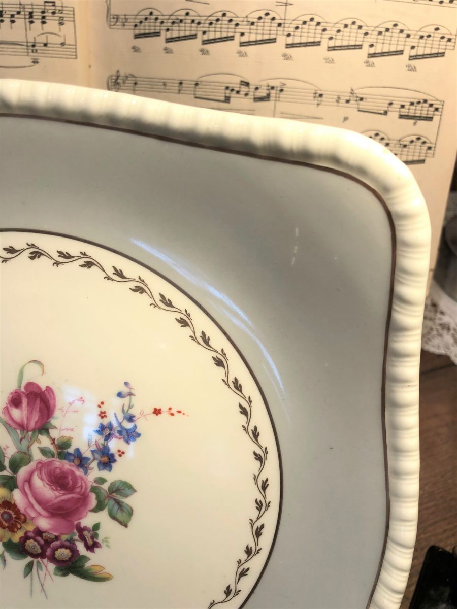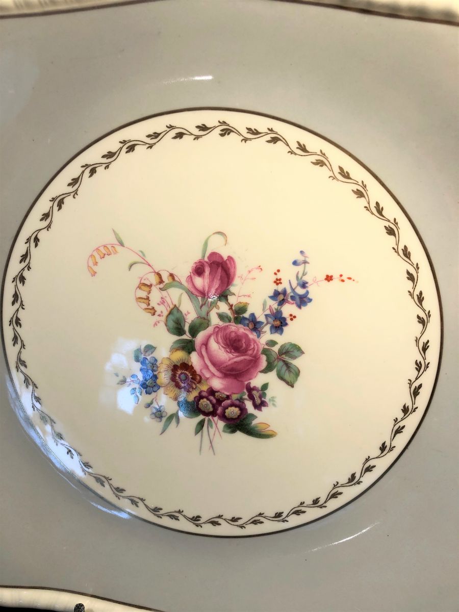 Le gris est + pastel dans la réalité que sur les photos. La dorure et le motif floral sont en très bon état.
