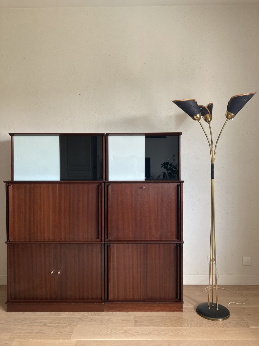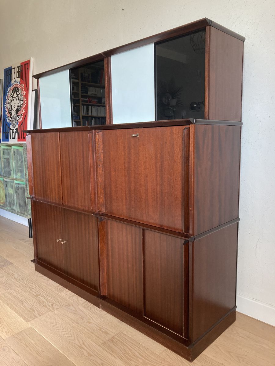Bibliothèque vitrine en enfilade Oscar vintage datant des années 60, dessiné par Didier Rozaffy. Un must have !