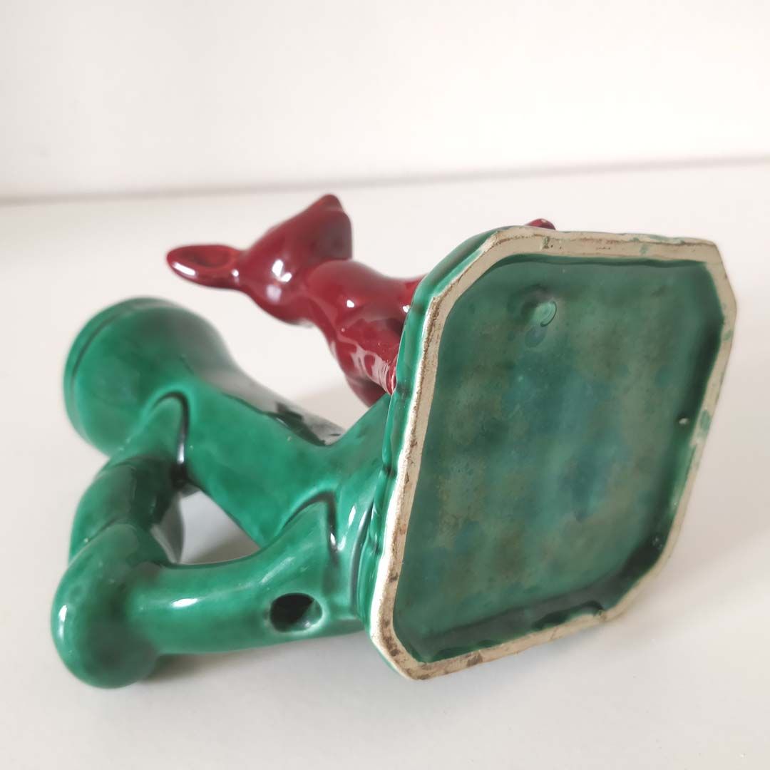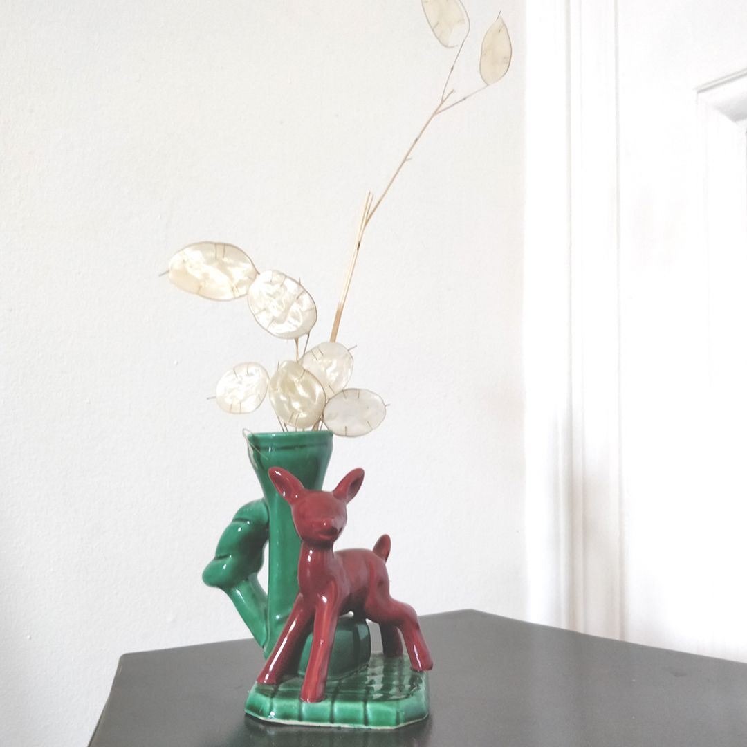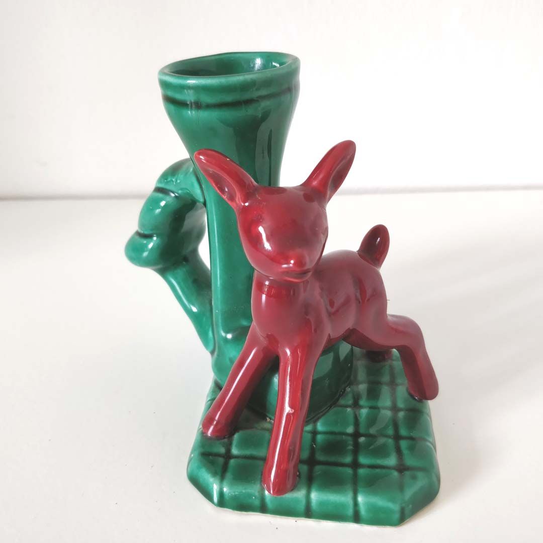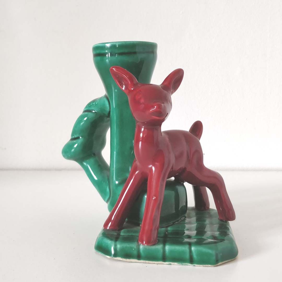 Joli bougeoir art déco en céramique avec son petit faon à détourner pourquoi pas en soliflore.