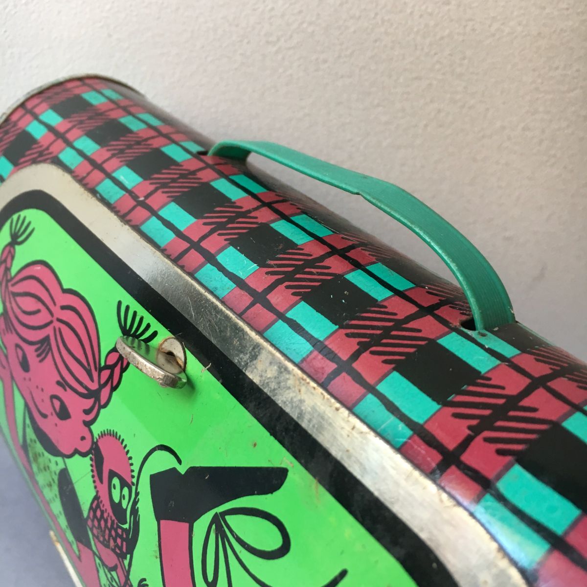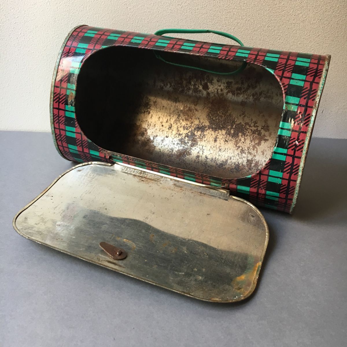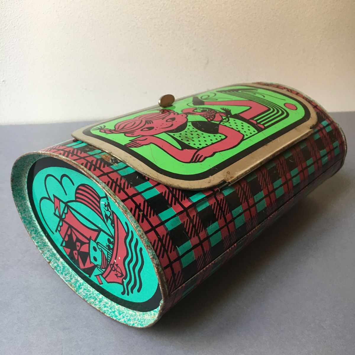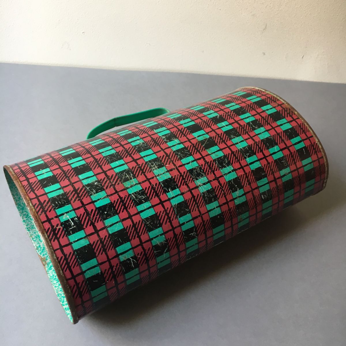 Cette petite valise était offerte avec des friandises. En tôle peinte.