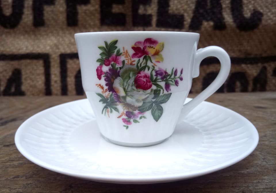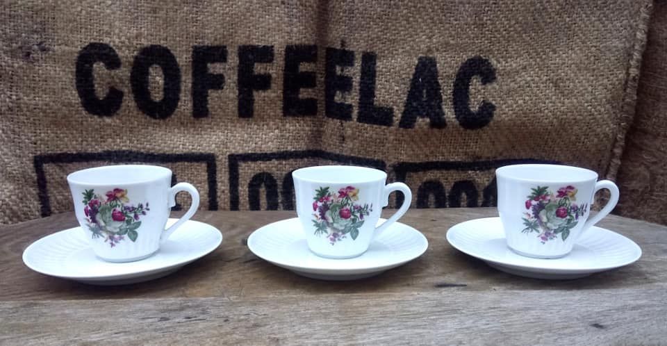 10 tasses à café et soucoupes en porcelaine de Chauvigny