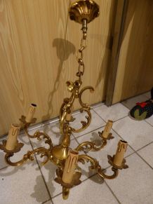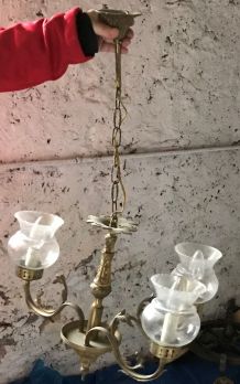 Du cache -bélière à la pointe du verre elle mesure 56 cm; la chaîne de suspension est très élaborée er permet de camoufler le fil électrique.