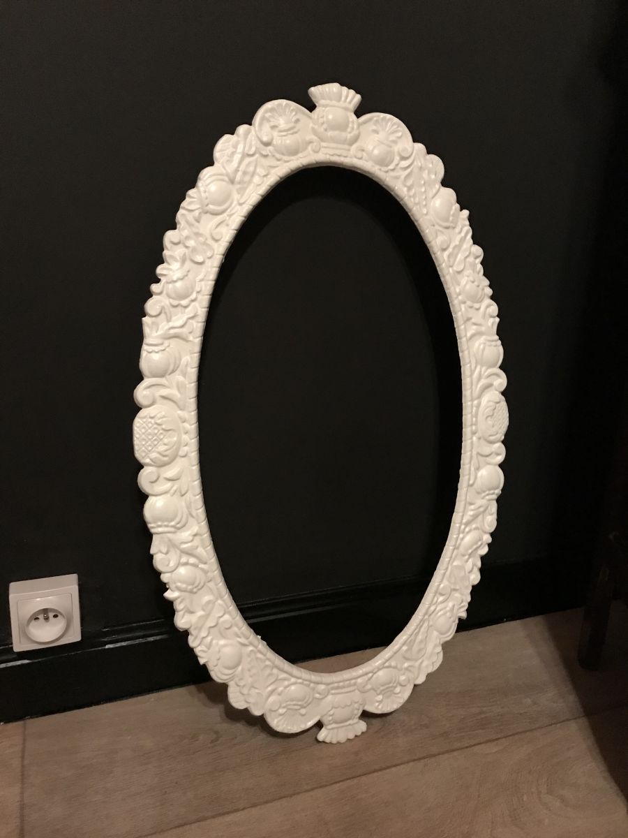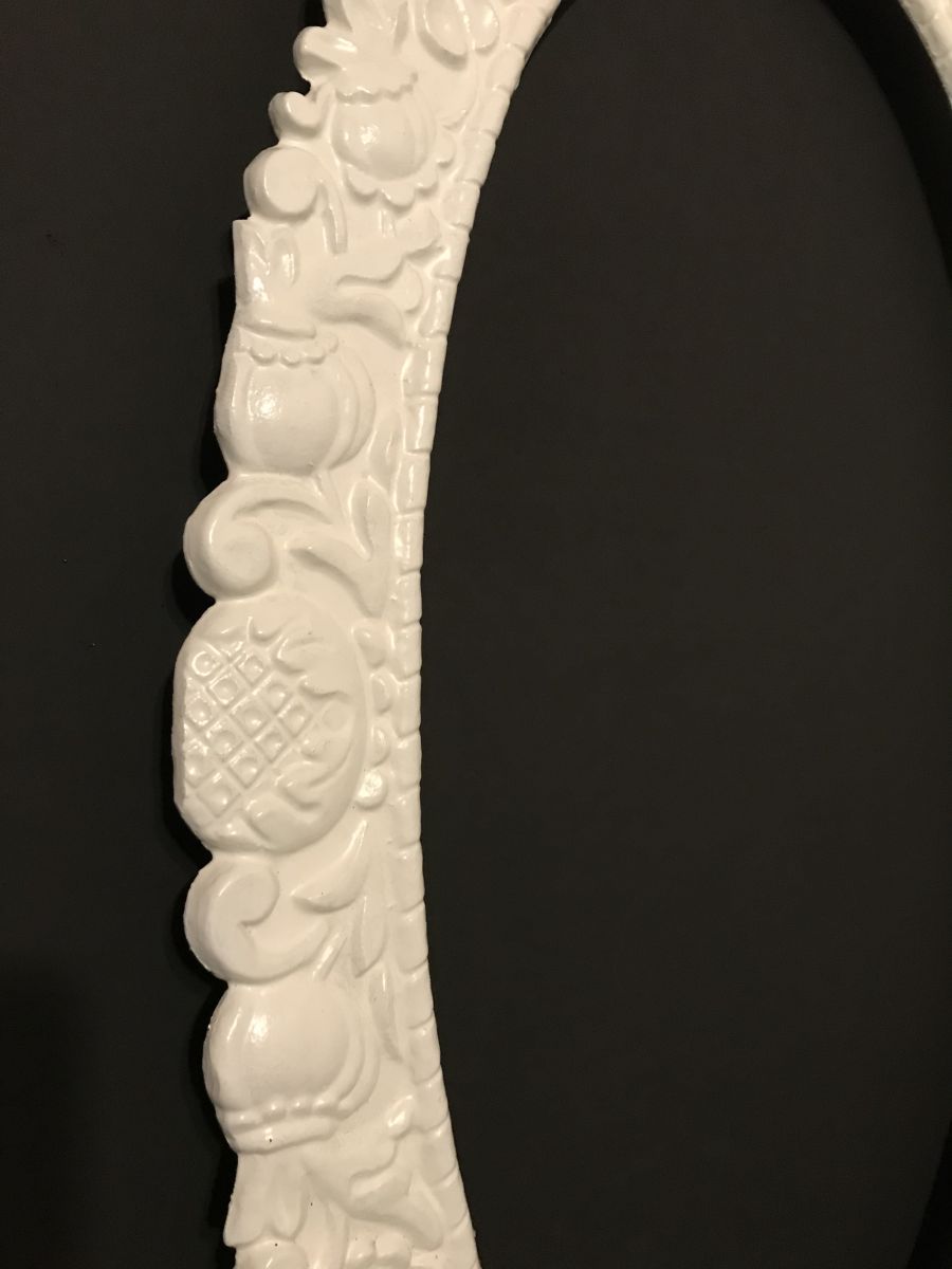 Très beau cadre métal sculpté peint en blanc pour miroir ou photo