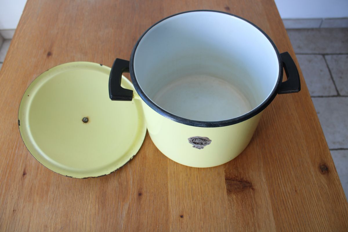 Excellent état, extérieur et intérieur. Juste quelques petits accrocs sur l'émail au niveau du couvercle.
