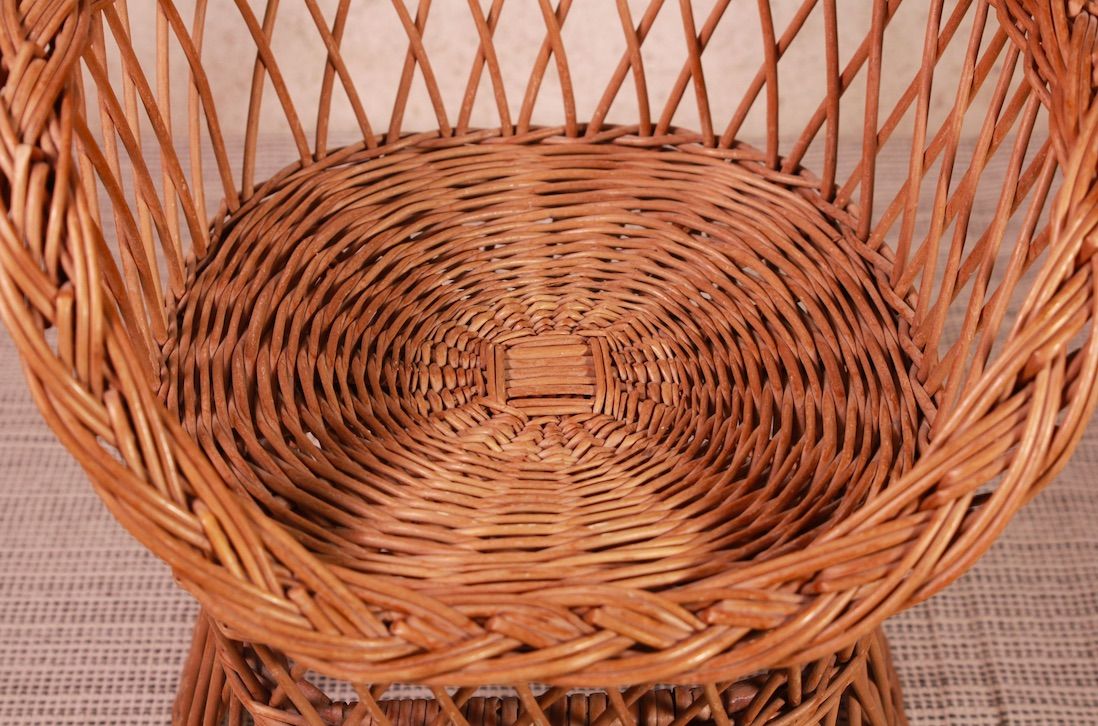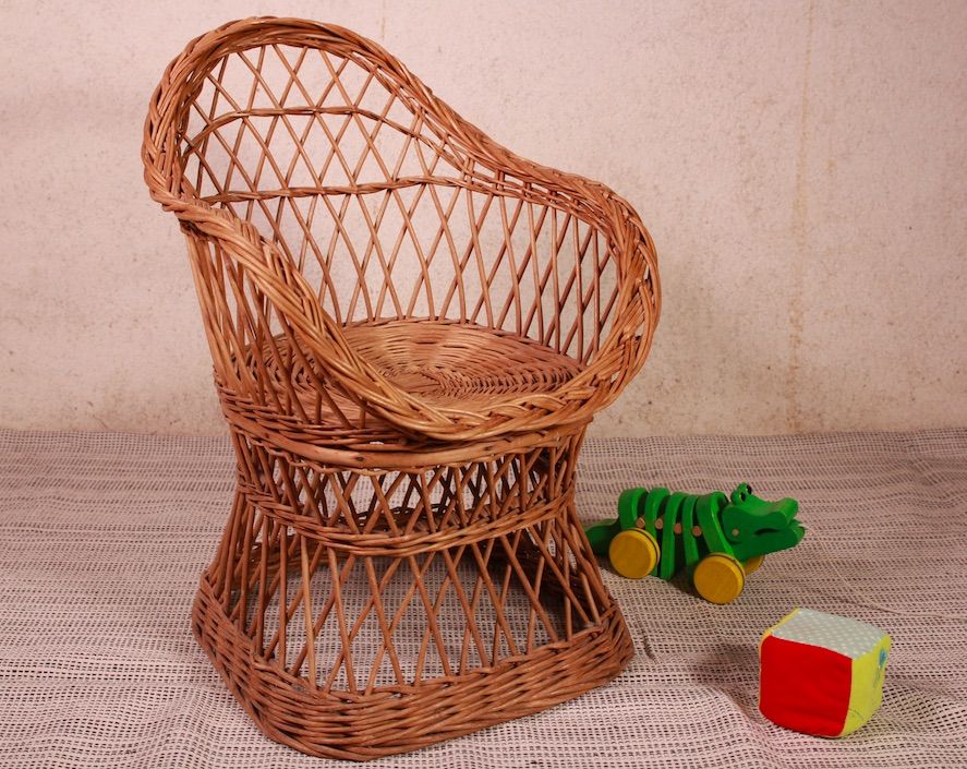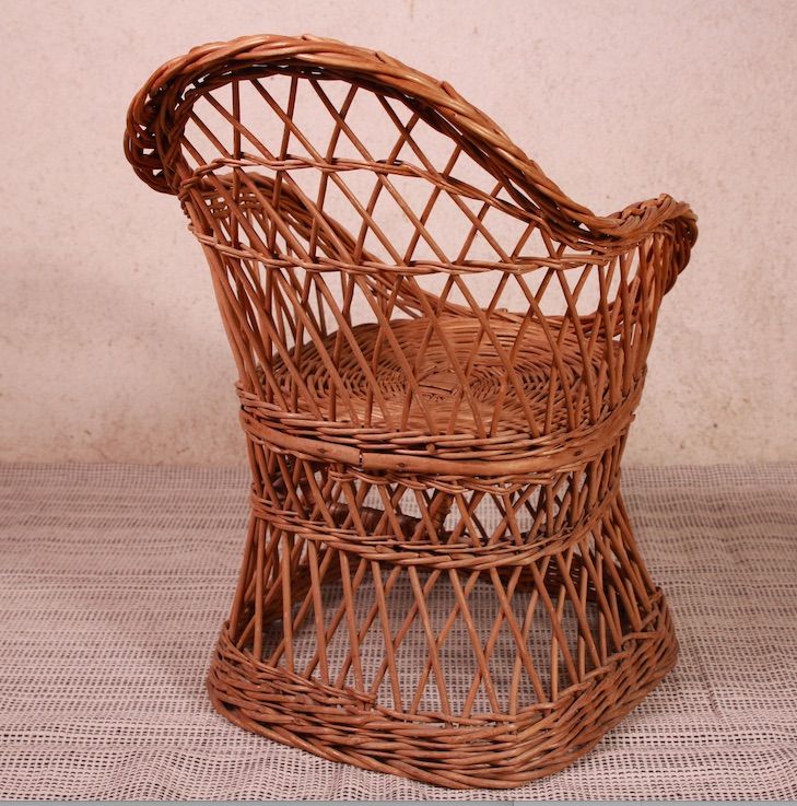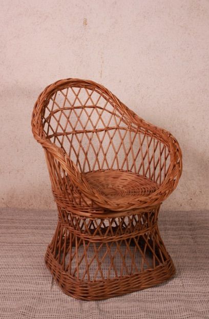 Chaise pour enfant en osier tressé sans peinture, vintage, usures du temps mais osier en parfait état = pas de cassure ou manquement.