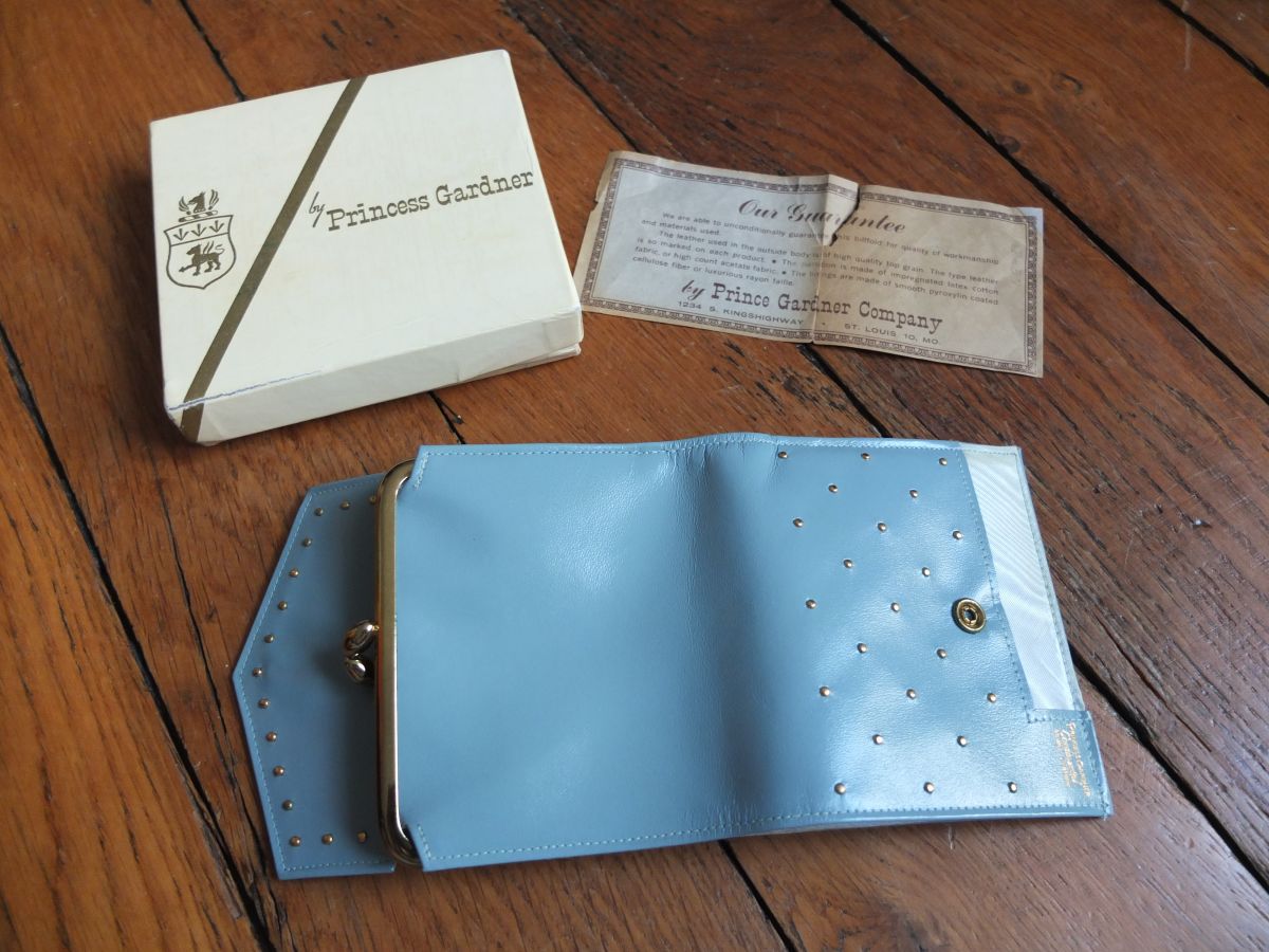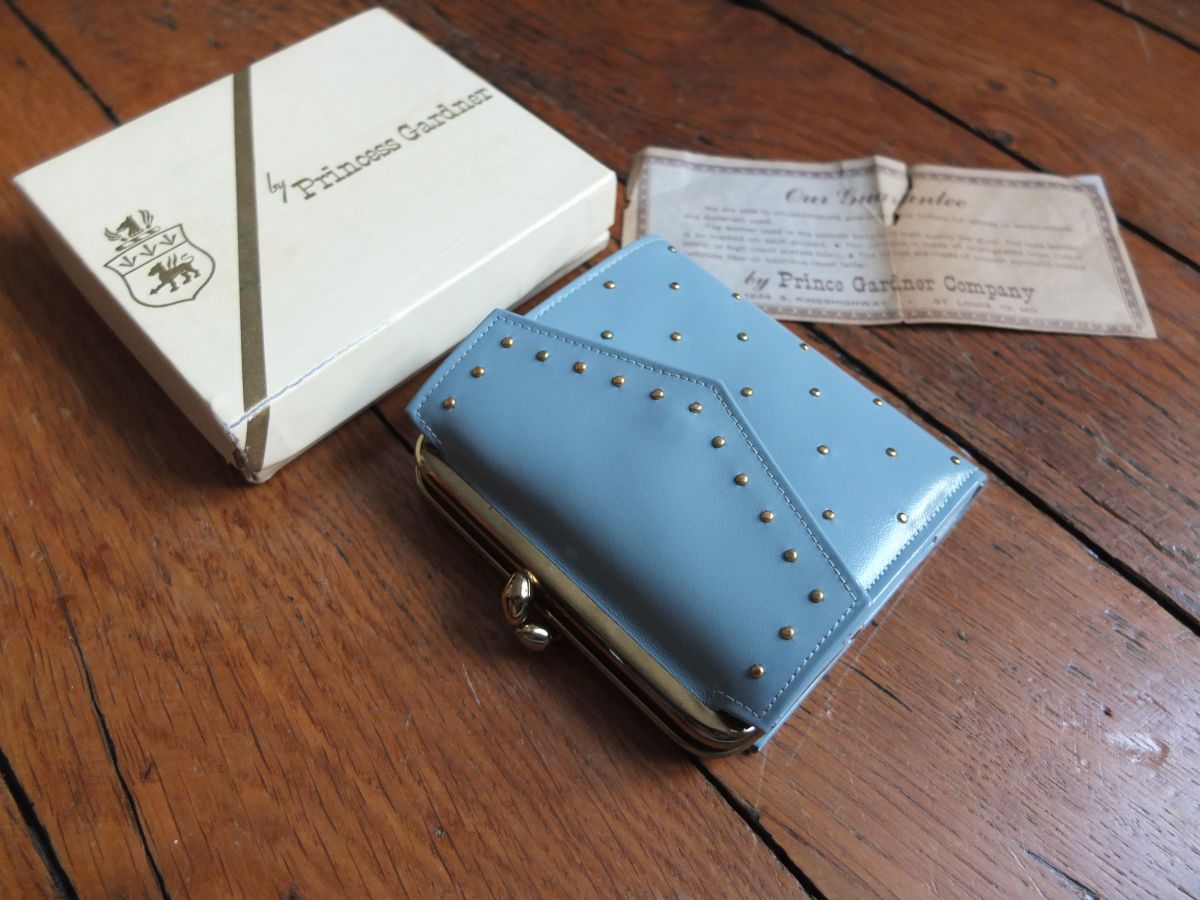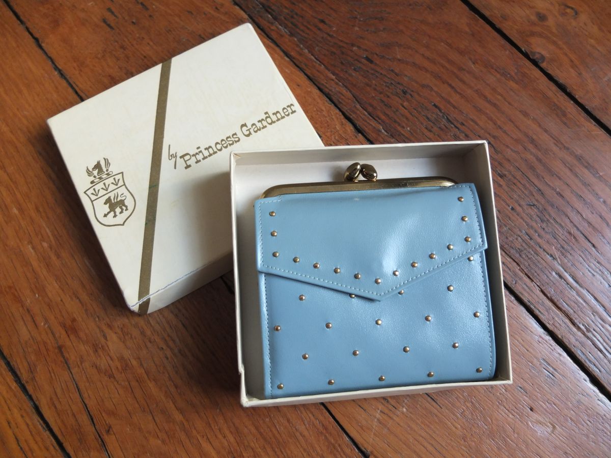 Portefeuille, porte-monnaie bleu glacier, clouté, neuf, « The Continental » by Princess Gardner. En cuir.