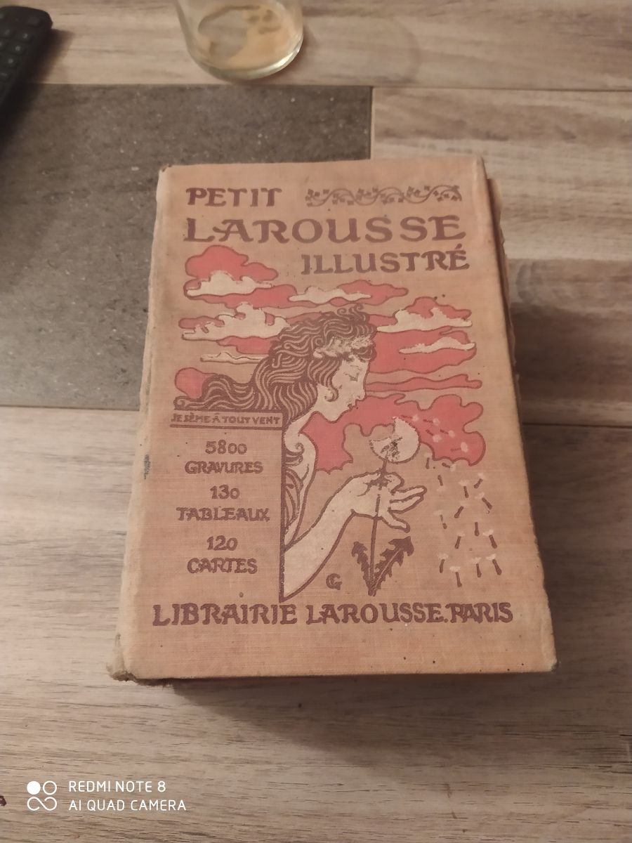 Petit Larousse illustré très ancien. État moyen. Quelques pages abîmées mais complet.