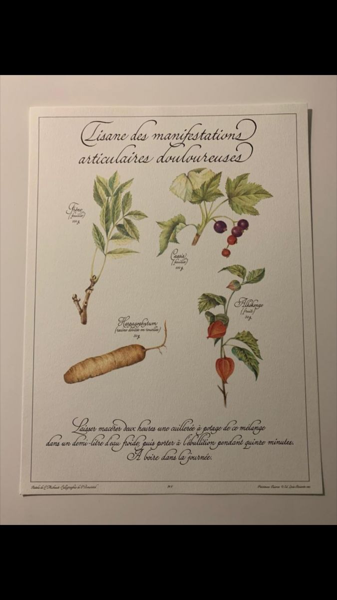 Planche botanique "tisane" issue de la + "précieuses tisanes", éditions louis pariente,1983 Dimension 29x39