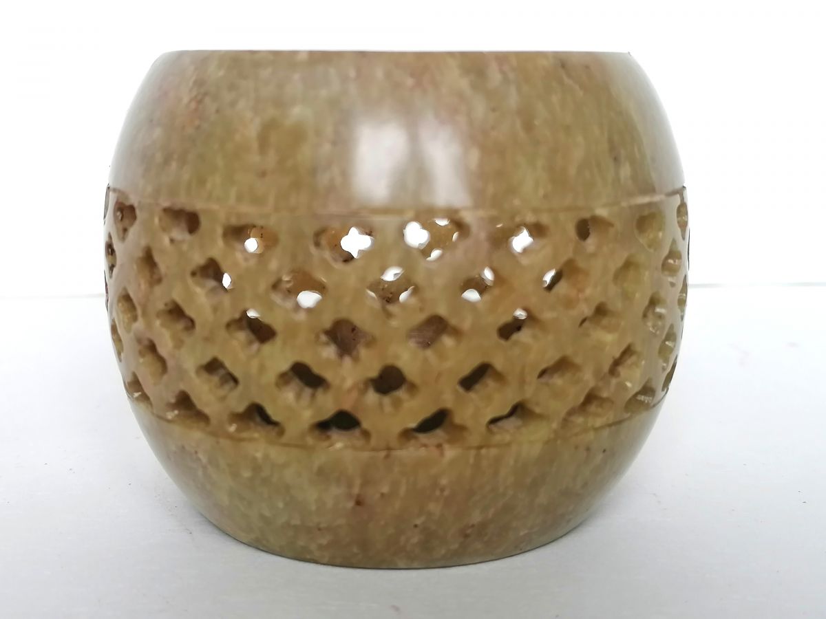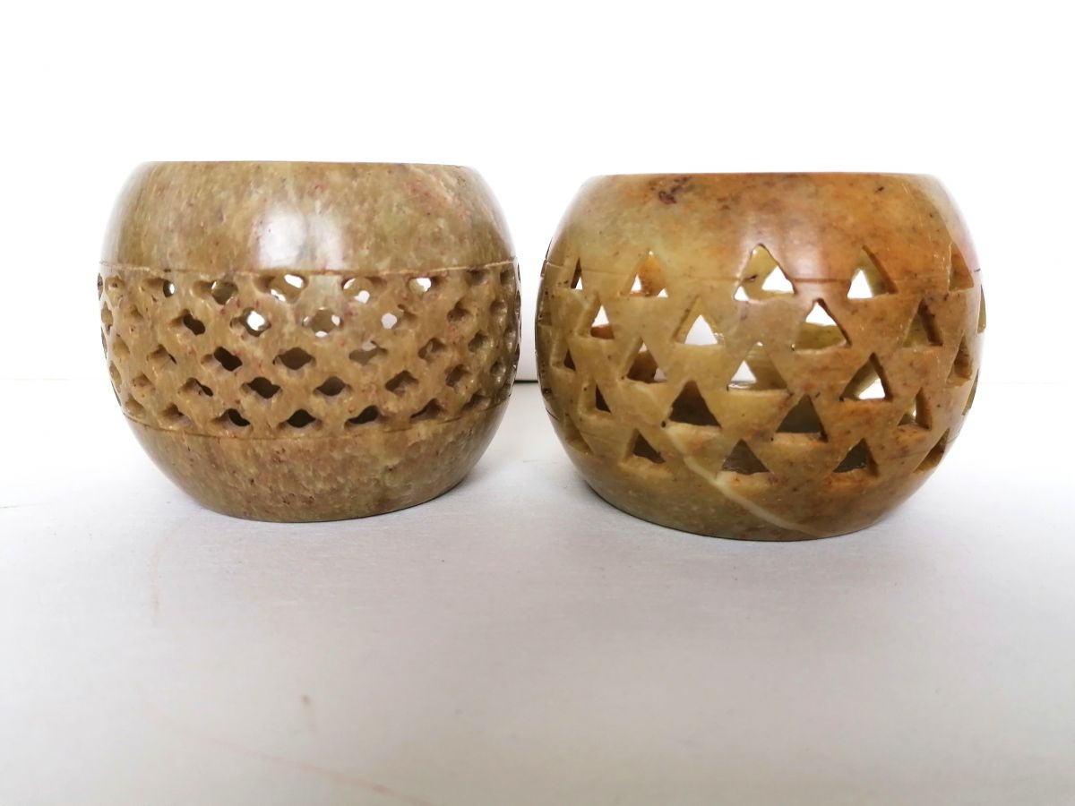 Duo de photophores en pierre ajouré, pour une décoration épurée et tendance. Pour se faire plaisir ou pour offrir.